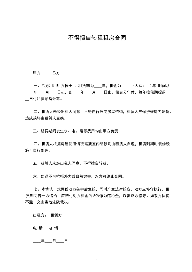 2、乙方无权转租、转借、转卖该房屋,及屋内家具家电,不得擅自改动房屋结构,爱护屋内设施,如有人为原因造成破损丢失应维修完好,否则照价赔偿。并做好防火,防盗,防漏水,和阳台摆放、花盆的安全工作,若造成损失责任自负。