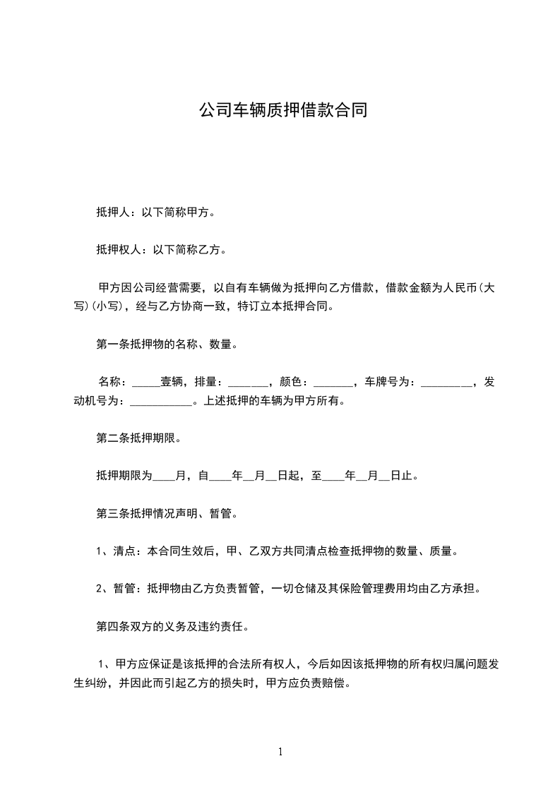 甲方因公司经营需要,以自有车辆做为抵押向乙方借款,借款金额为人民币(大写)(小写),经与乙方协商一致,特订立本抵押合同。