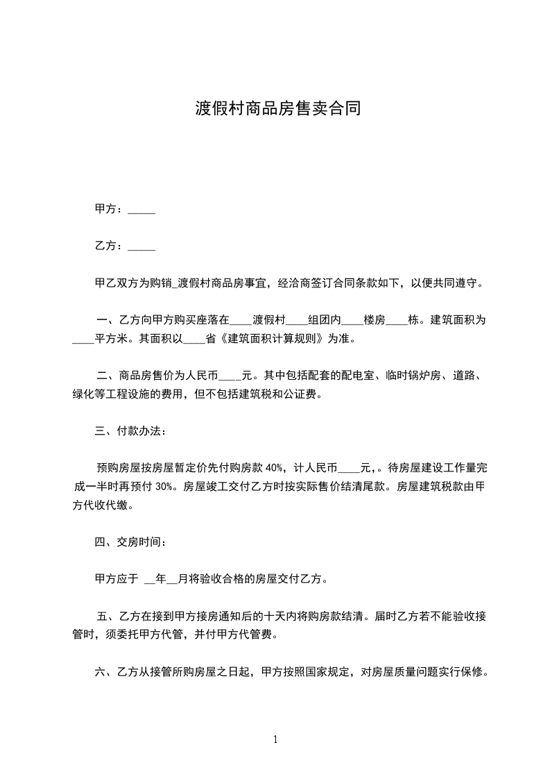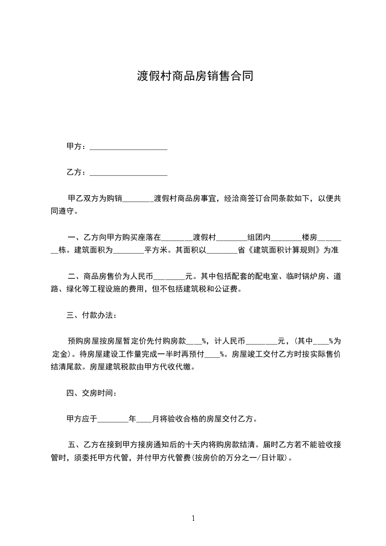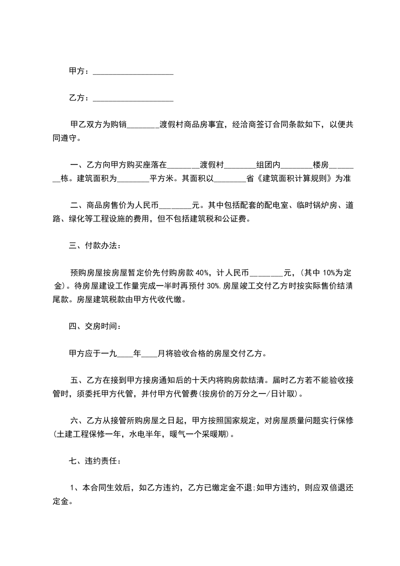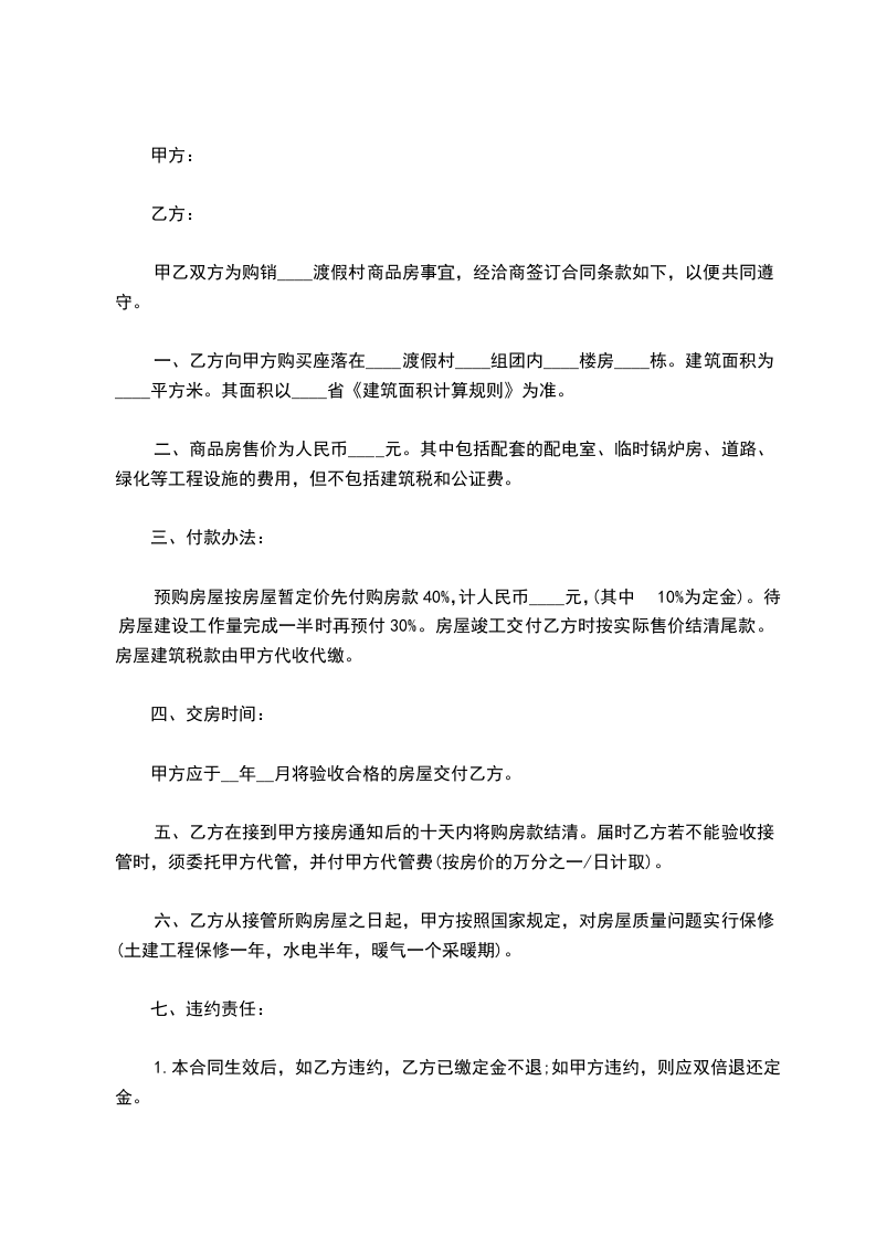 甲乙双方为购销________渡假村商品房事宜,经洽商签订合同条款如下,以便共同遵守。
