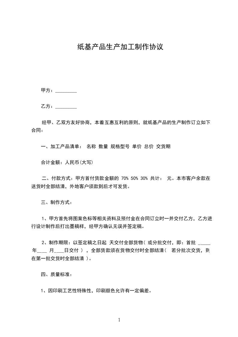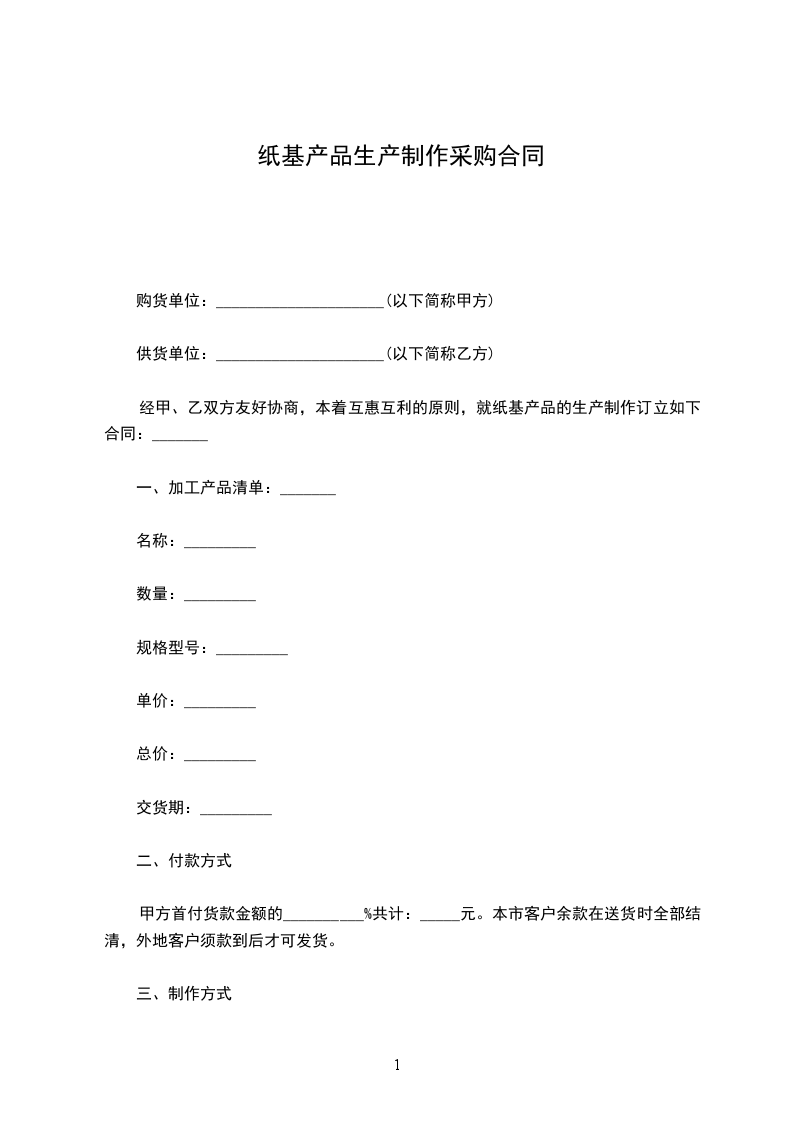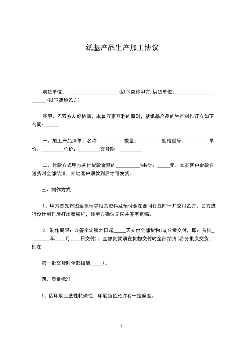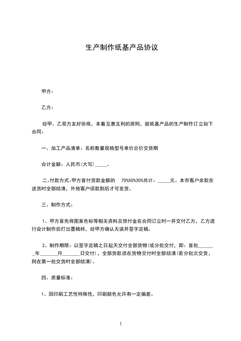 经甲、乙双方友好协商,本着互惠互利的原则,就纸基产品的生产制作订立如下合同: