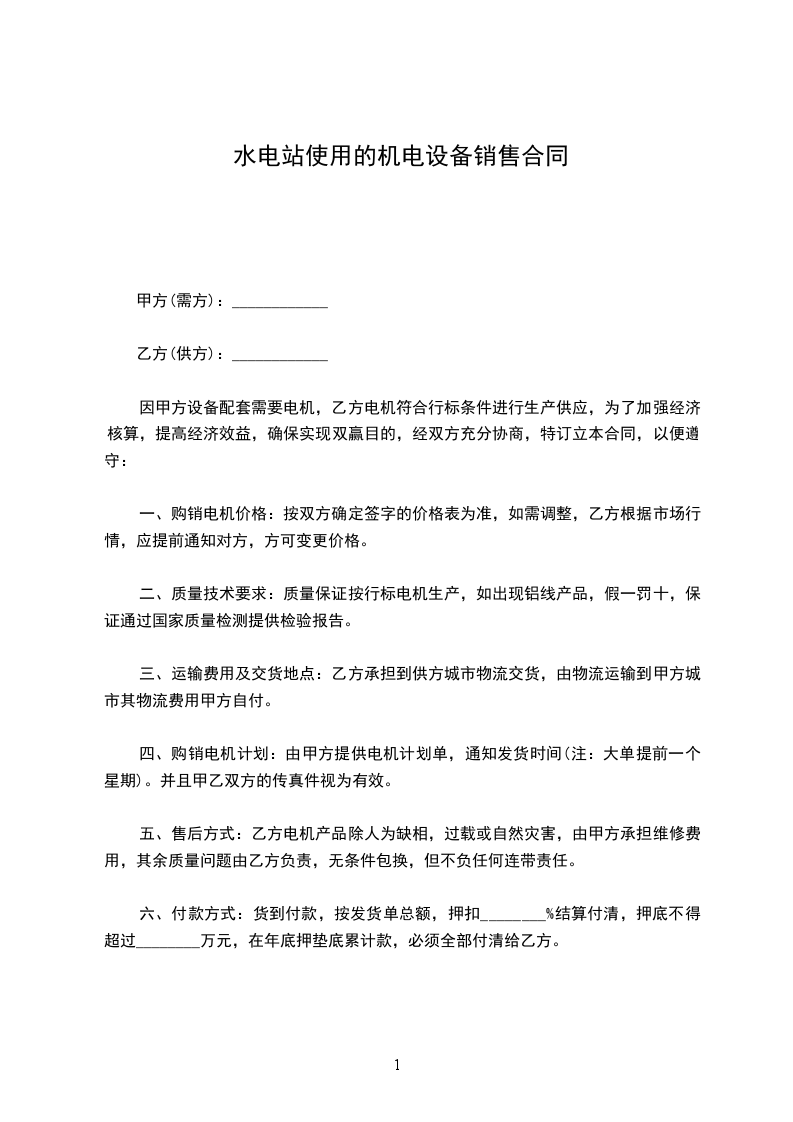 因甲方设备配套需要电机,乙方电机符合行标条件进行生产供应,为了加强经济核算,提高经济效益,确保实现双赢目的,经双方充分协商,特订立本合同,以便遵守: