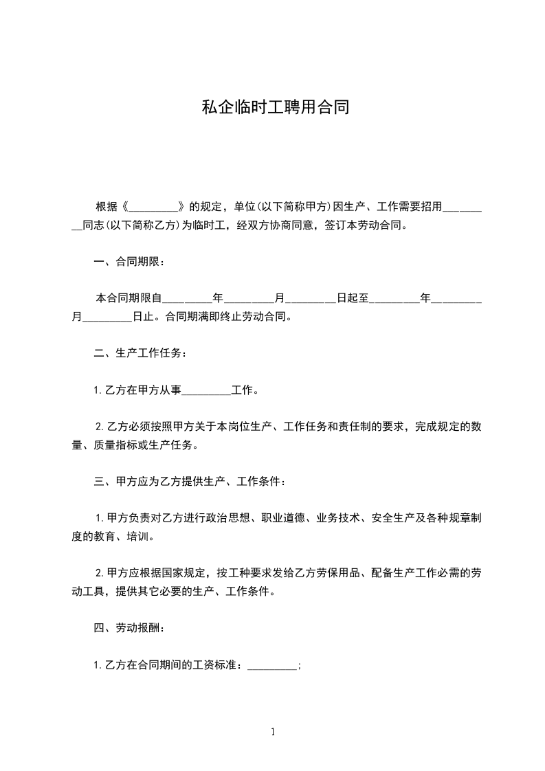 根据《_________》的规定,单位(以下简称甲方)因生产、工作需要招用_________同志(以下简称乙方)为临时工,经双方协商同意,签订本劳动合同。