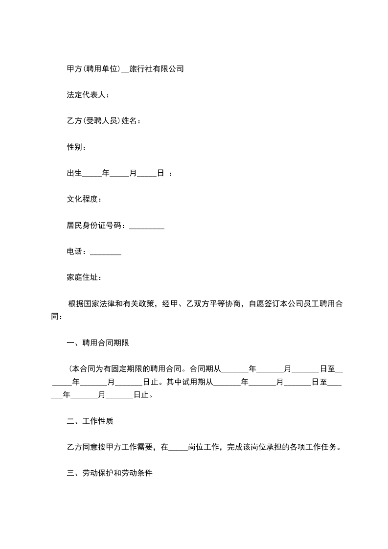 (本合同为有固定期限的聘用合同。合同期从_______年_______月_______日至_______年_______月_______日止。其中试用期从_______年_______月_______日至_______年_______月_______日止。