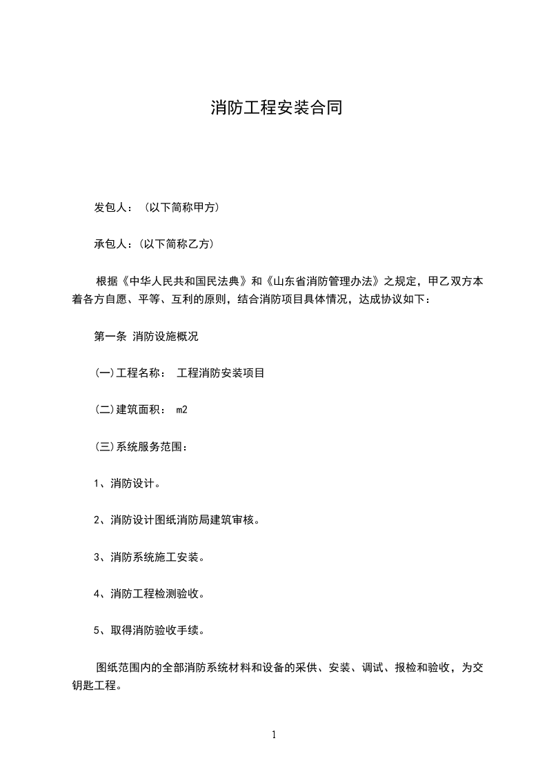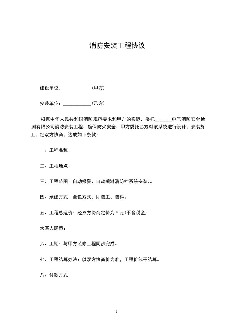 根据中华人民共和国消防规范要求和甲方的实际,委托_______电气消防安全检测有限公司消防安装工程,确保防火安全,甲方委托乙方对该系统进行设计、安装施工,经双方协商,达成如下条款:
