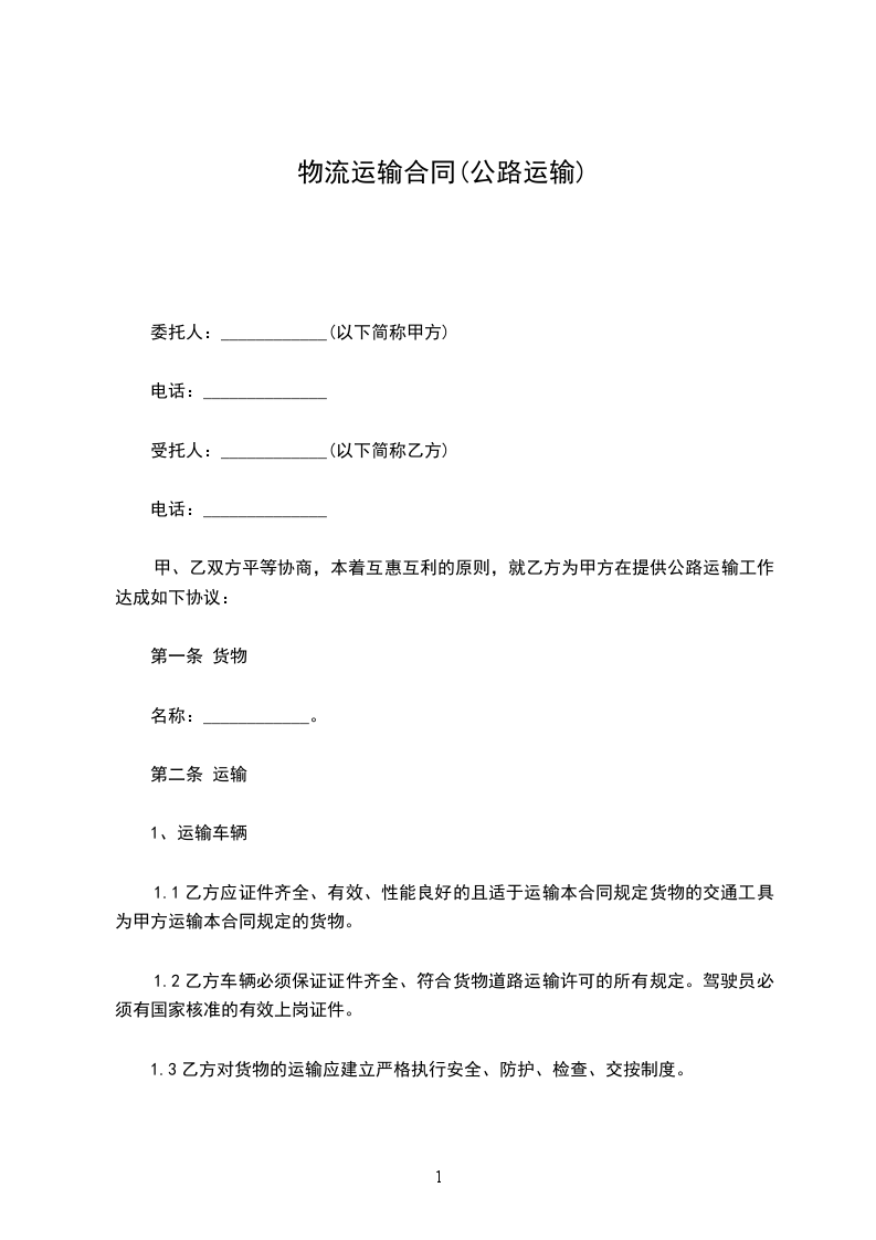 1.3乙方对货物的运输应建立严格执行安全、防护、检查、交按制度。