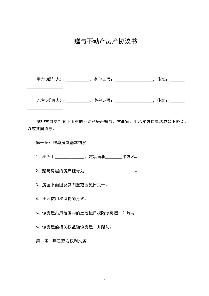 第一条 甲方将其所有的不动产依以下各条约定赠与乙方。