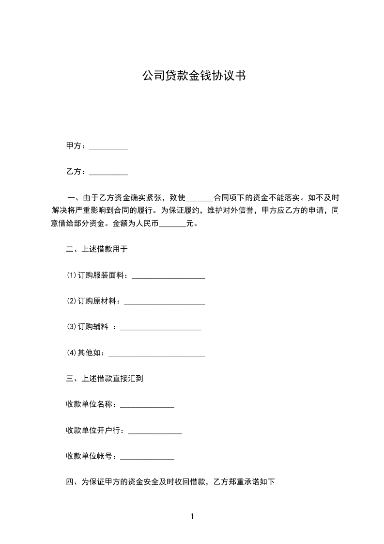 一、由于乙方资金确实紧张,致使_______合同项下的资金不能落实。如不及时解决将严重影响到合同的履行。为保证履约,维护对外信誉,甲方应乙方的申请,同意借给部分资金。金额为人民币_______元。