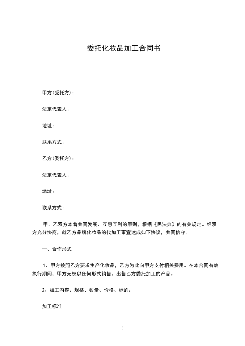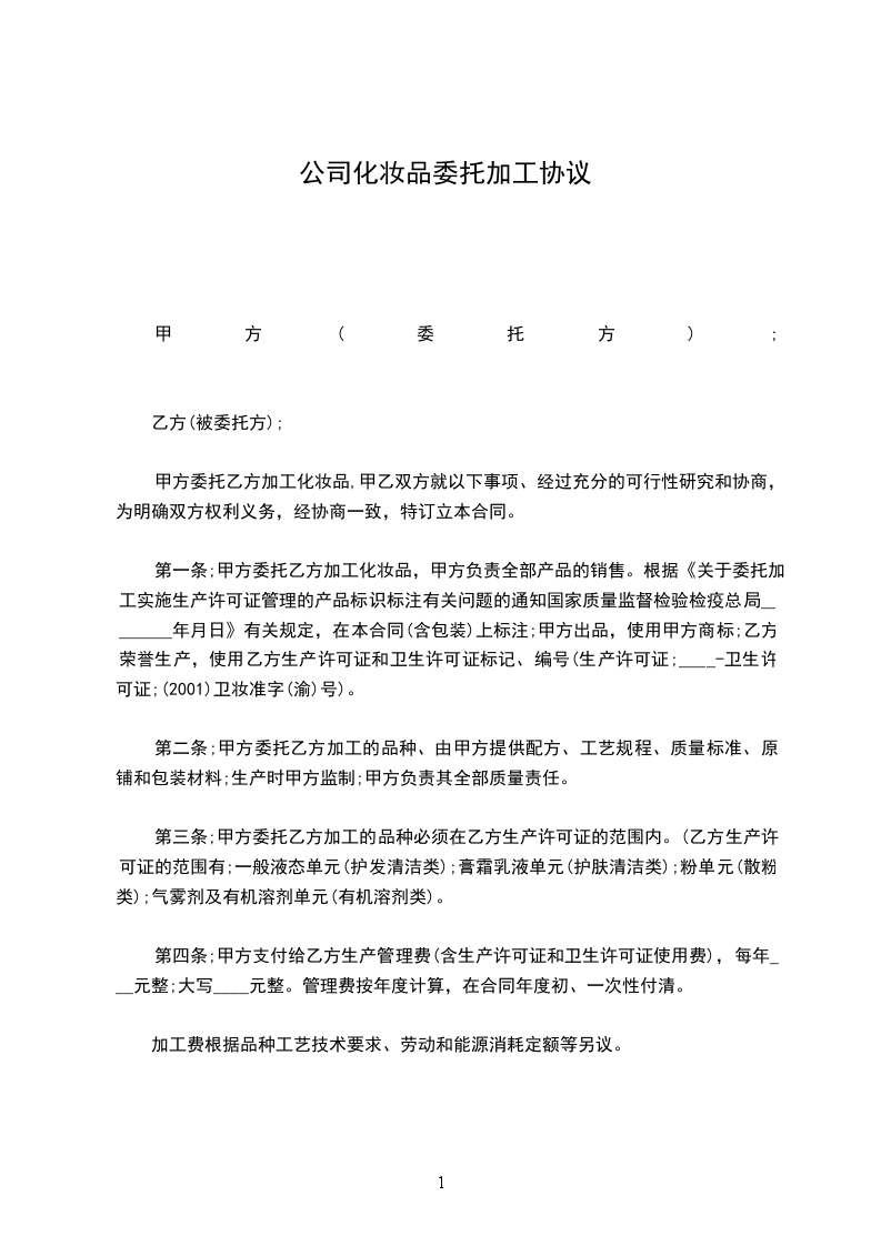 甲方委托乙方加工化妆品,甲乙双方就以下事项、经过充分的可行性研究和协商,为明确双方权利义务,经协商一致,特订立本合同。
