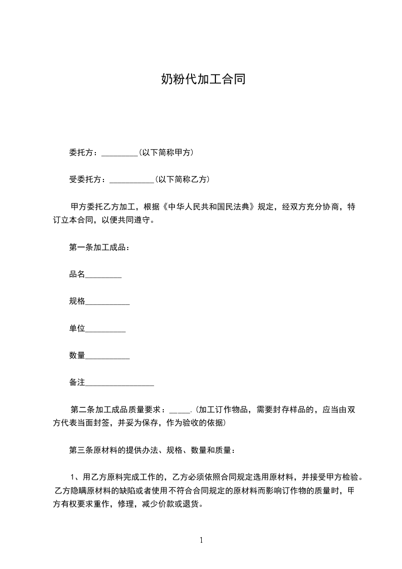 甲方委托乙方加工,根据《中华人民共和国民法典》规定,经双方充分协商,特订立本合同,以便共同遵守。