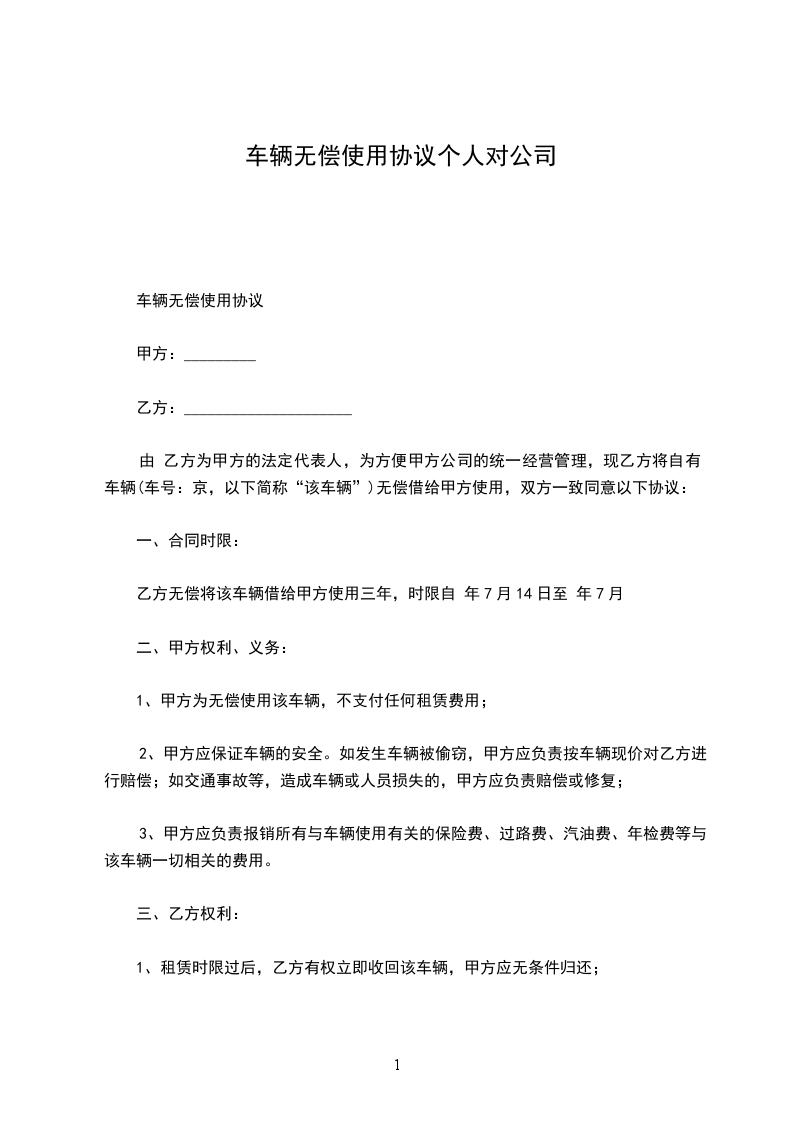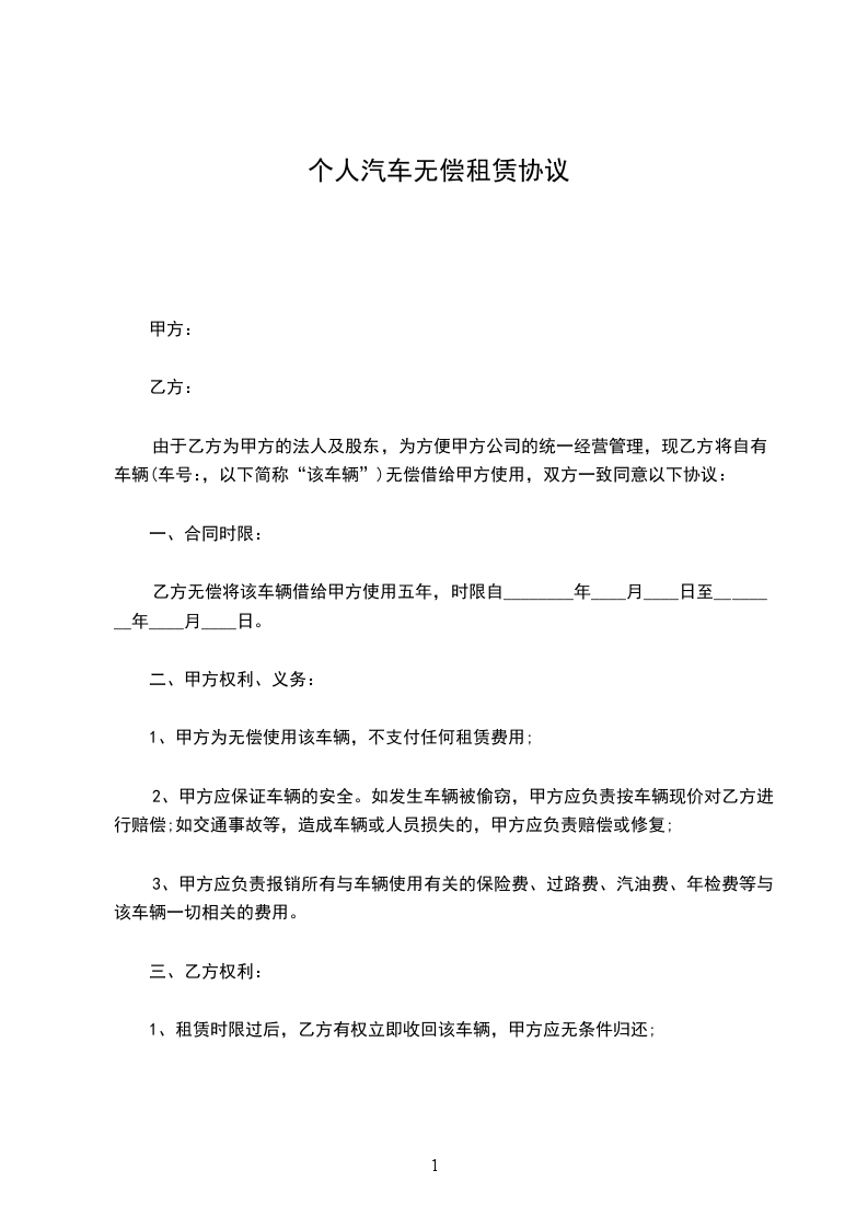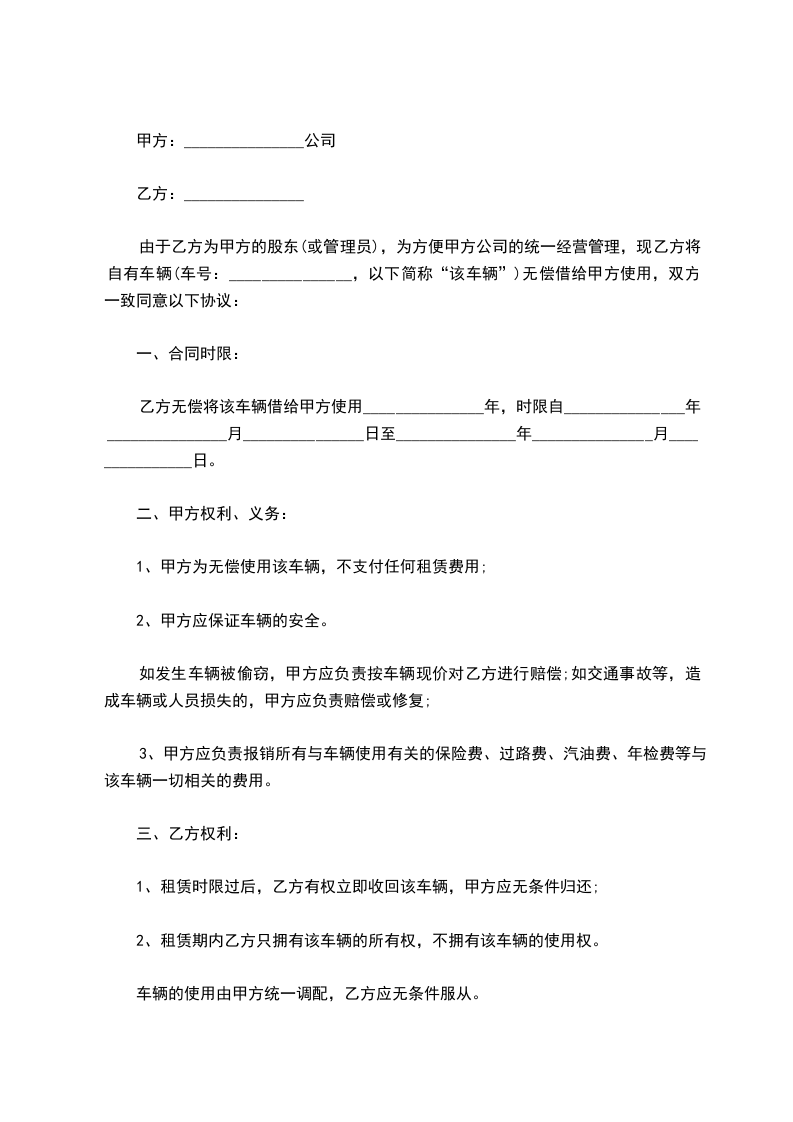第四条租金:经甲乙双方协商决定,乙方在租期内无偿使用甲方该车辆。