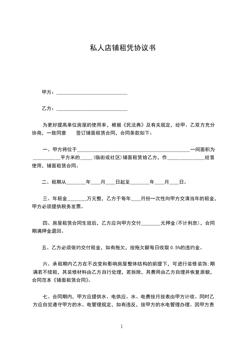 为更好提高单位房屋的使用率,根据《民法典》及有关规定,经甲、乙双方充分协商,一致同意 签订铺面租赁合同,合同条款如下: