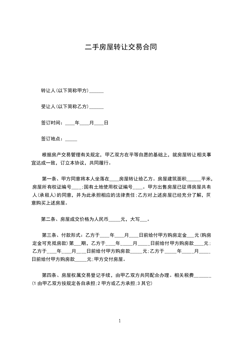 出让方:(以下简称甲方):_________ 买受方:(以下简称乙方):_________