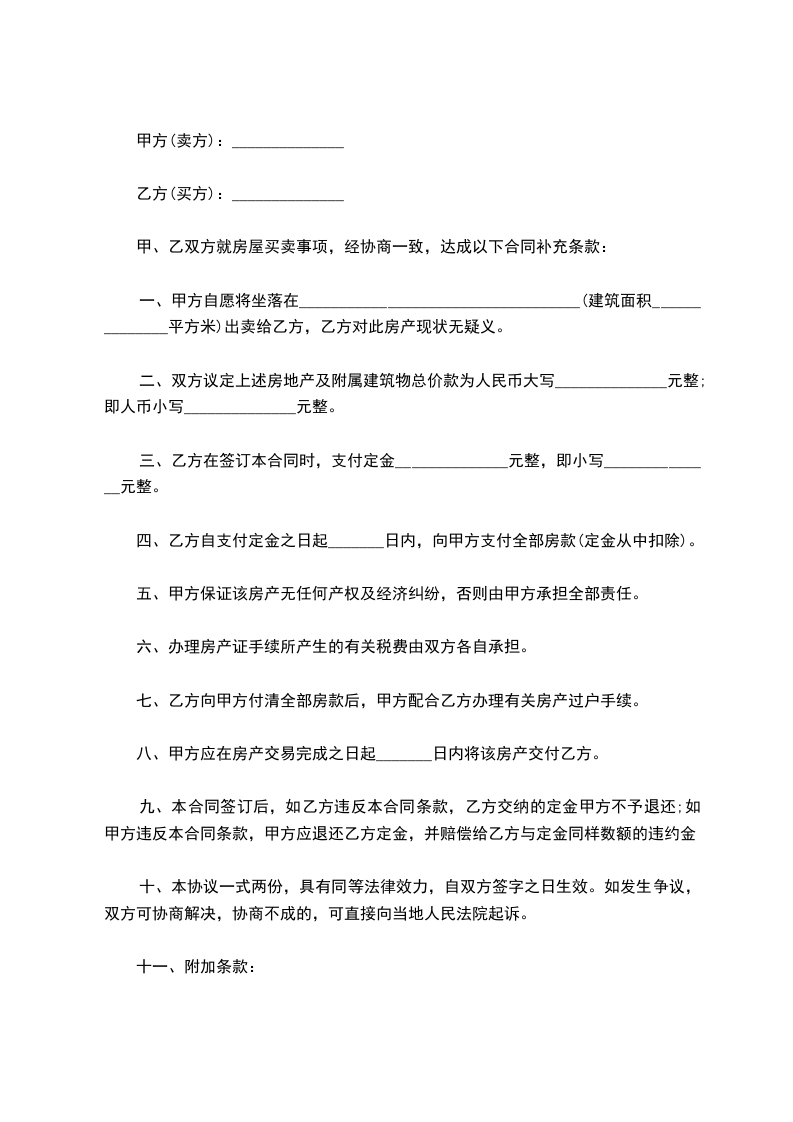 第八条 在权属未变更以前,甲方不得再行就该房产进行买卖、抵押等处分行为。