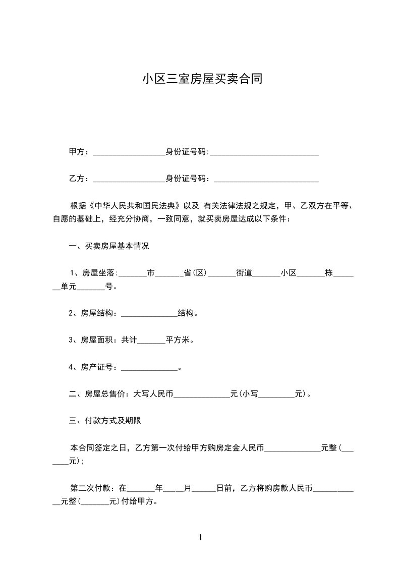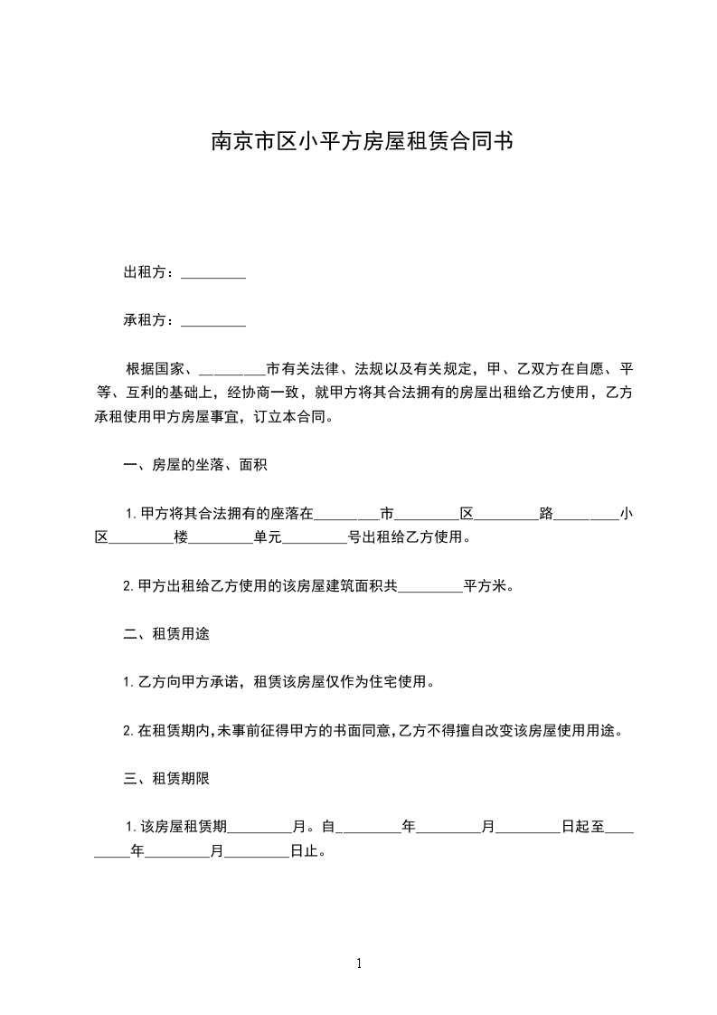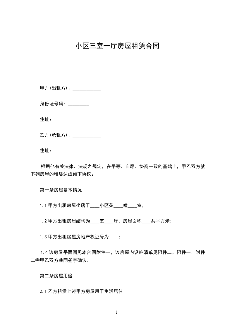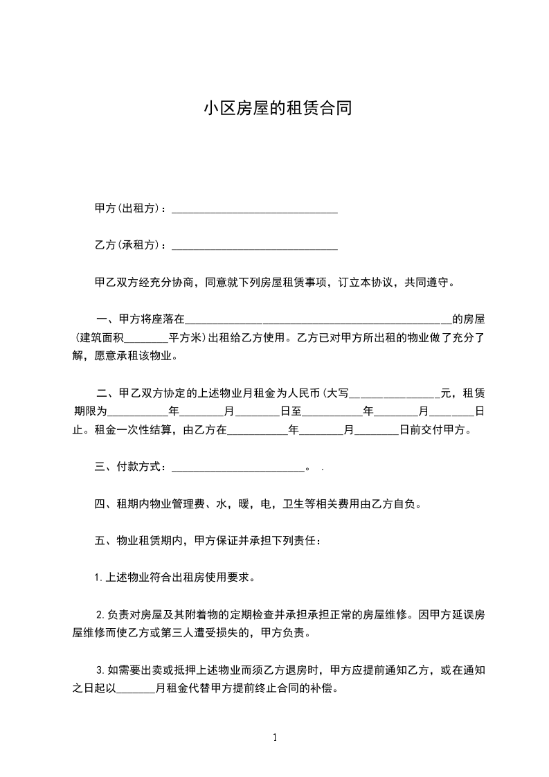 一、现甲方将________区小区室共计面积________平方米,出租给乙方.
