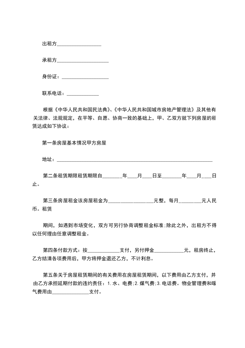 甲方(出租方): 代理人: 身份证号: