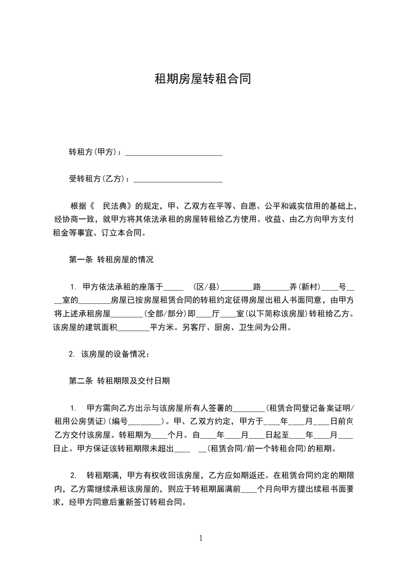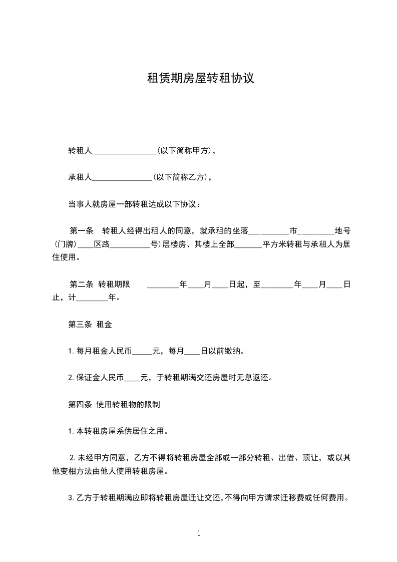 第一条 转租人经得出租人的同意,就承租的坐落__________市_________地号(门牌)____区路__________号)层楼房、其楼上全部_______平方米转租与承租人为居住使用。