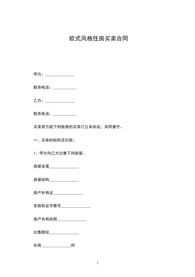 1、甲方向乙方出售下列房屋: