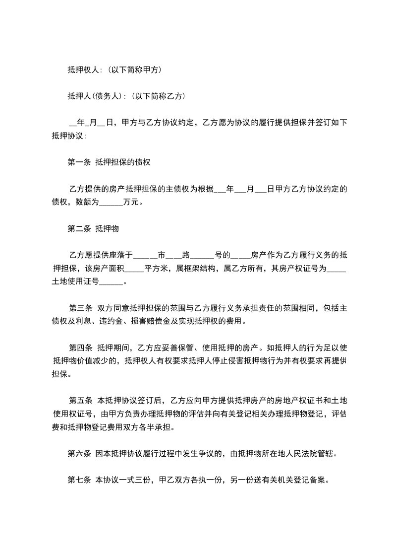 抵押人(以下简称甲方)____________