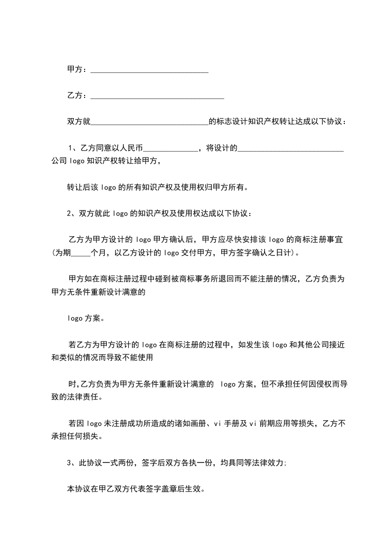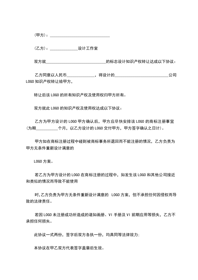 乙方同意以人民币______________,将设计的___________________________公司LOGO知识产权转让给甲方,