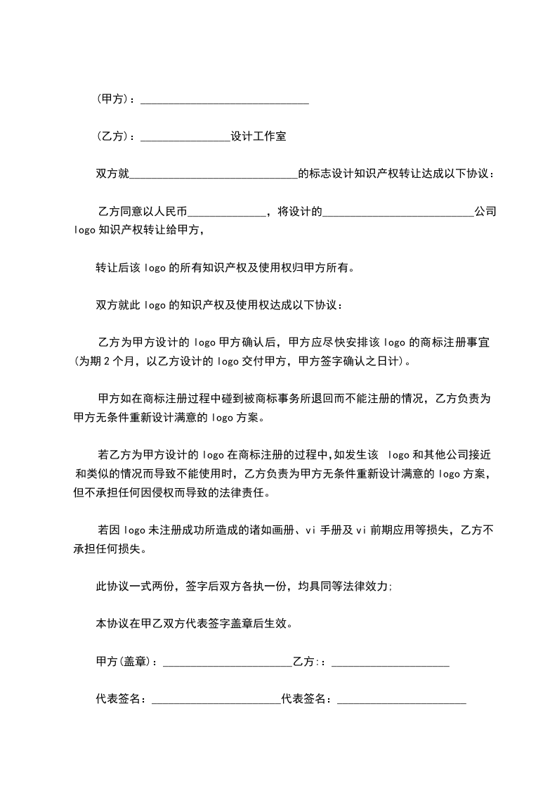 双方就______________________________的标志设计知识产权转让达成以下协议: