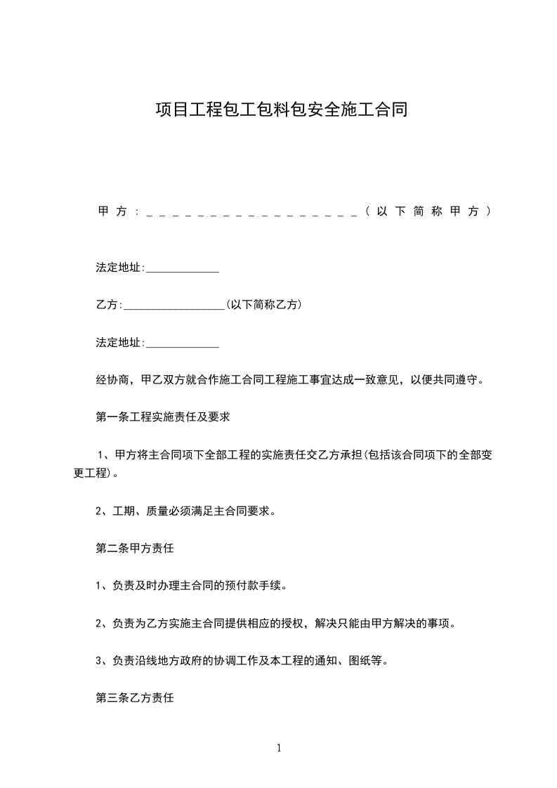 1、本工程采用包工包料包安全的方式,一次包干价:_____元,按甲方给乙方提供的图纸所注明的工程量,超出图纸部分另行计算。