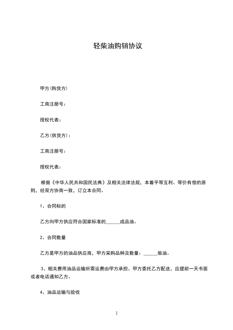 乙方向甲方供应符合国家标准的______成品油。