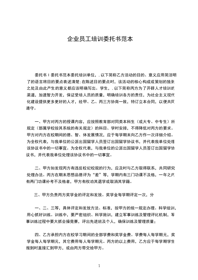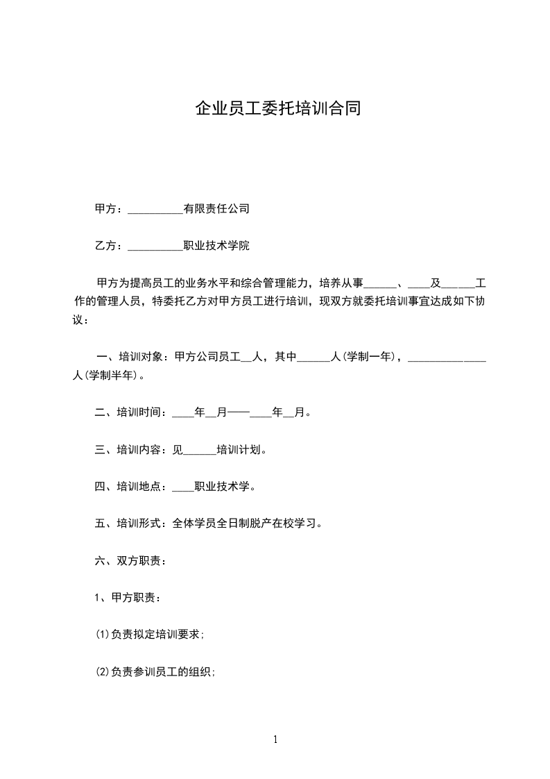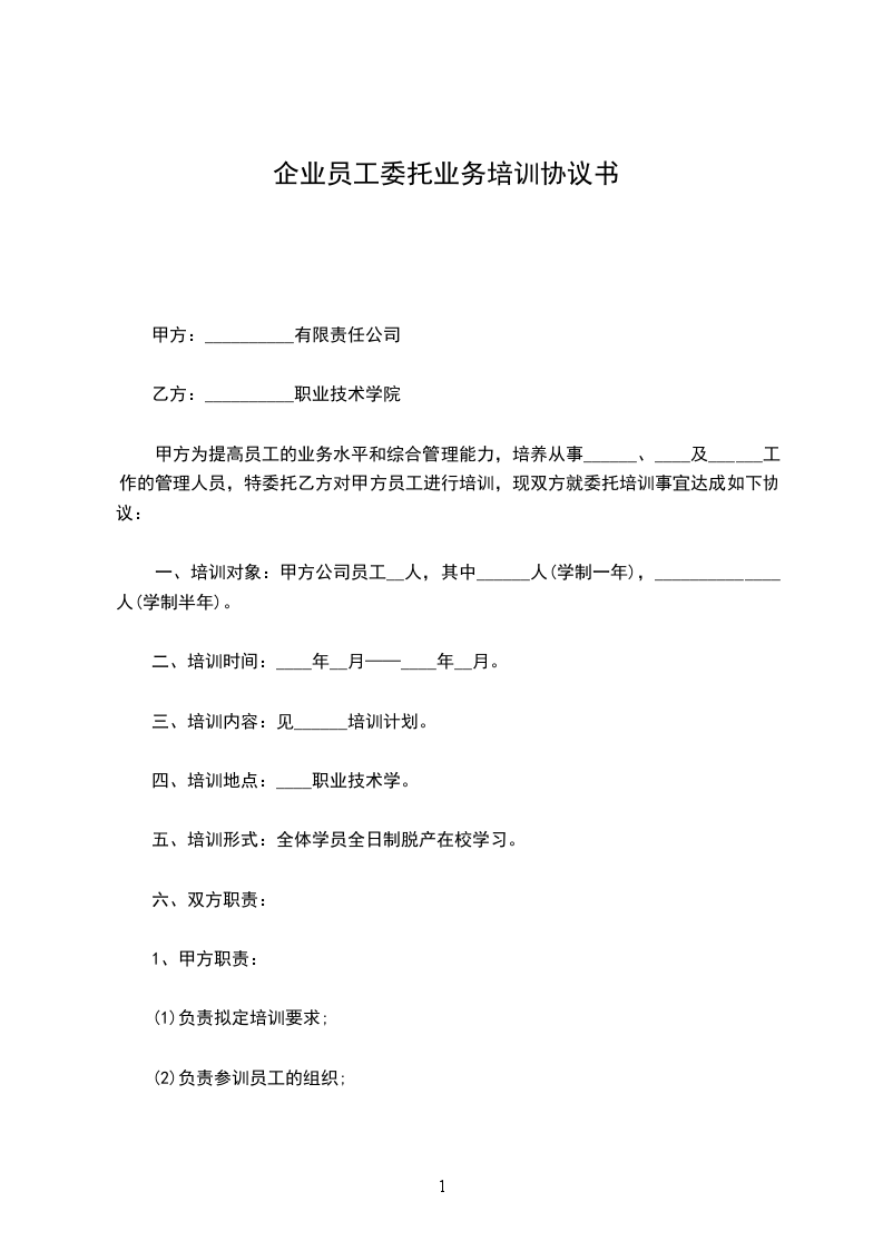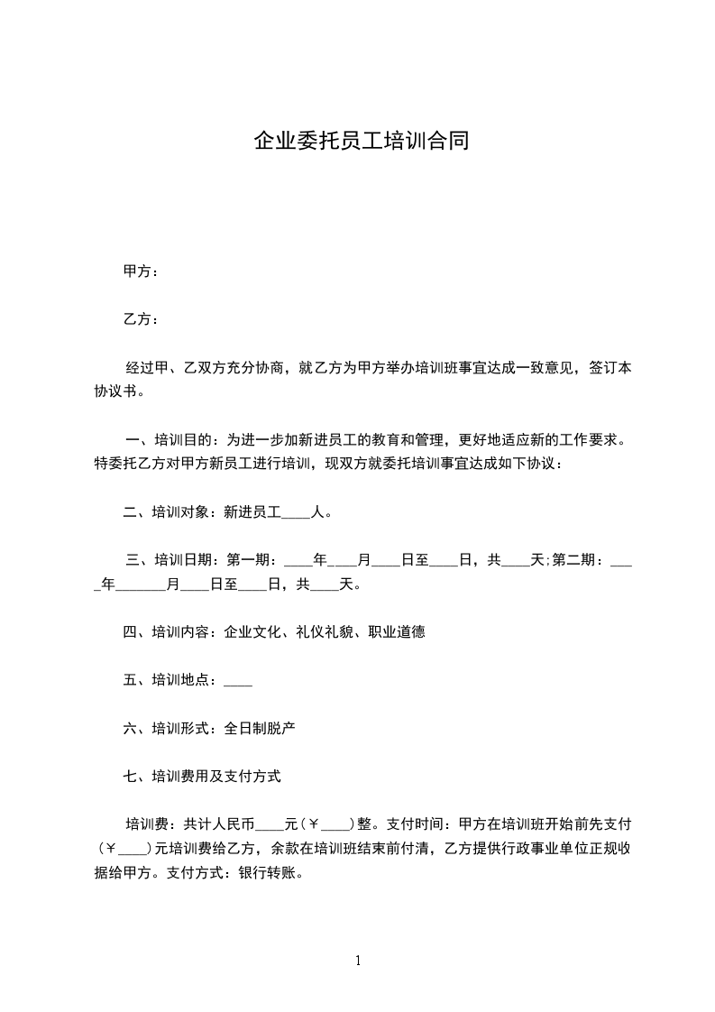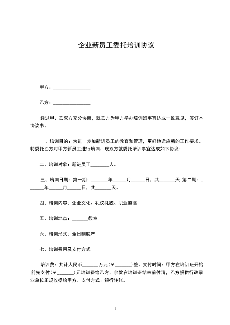一、培训目的:为进一步加新进员工的教育和管理,更好地适应新的工作要求。特委托乙方对甲方新员工进行培训,现双方就委托培训事宜达成如下协议: