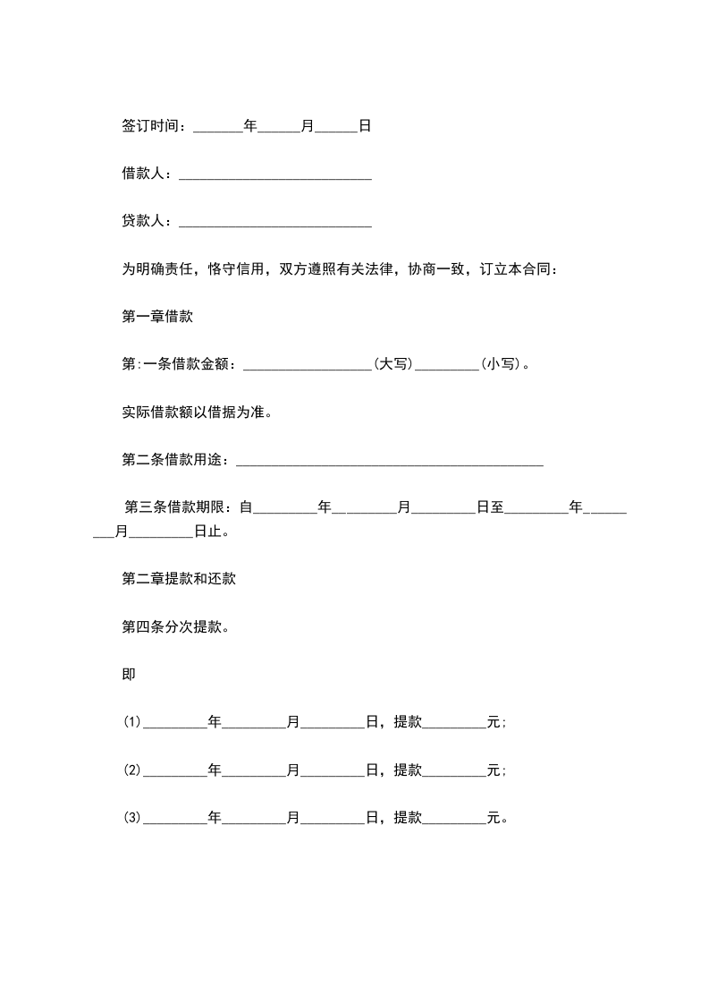 第三条借款期限:自_________年_________月_________日至_________年_________月_________日止。