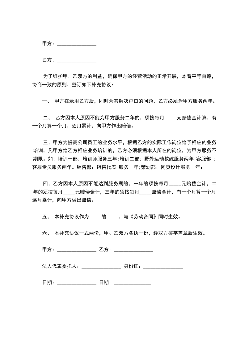 一、协议内容补充修改部分为: