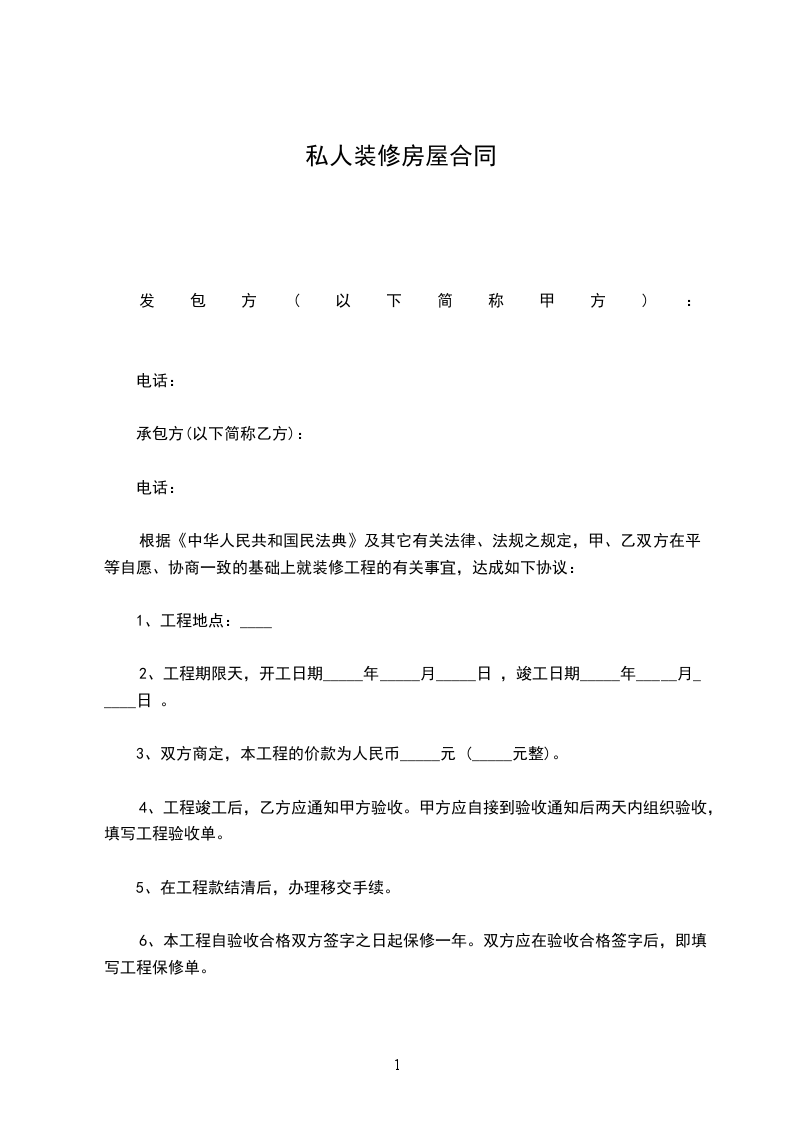 根据《中华人民共和国民法典》及其它有关法律、法规之规定,甲、乙双方在平等自愿、协商一致的基础上就装修工程的有关事宜,达成如下协议: