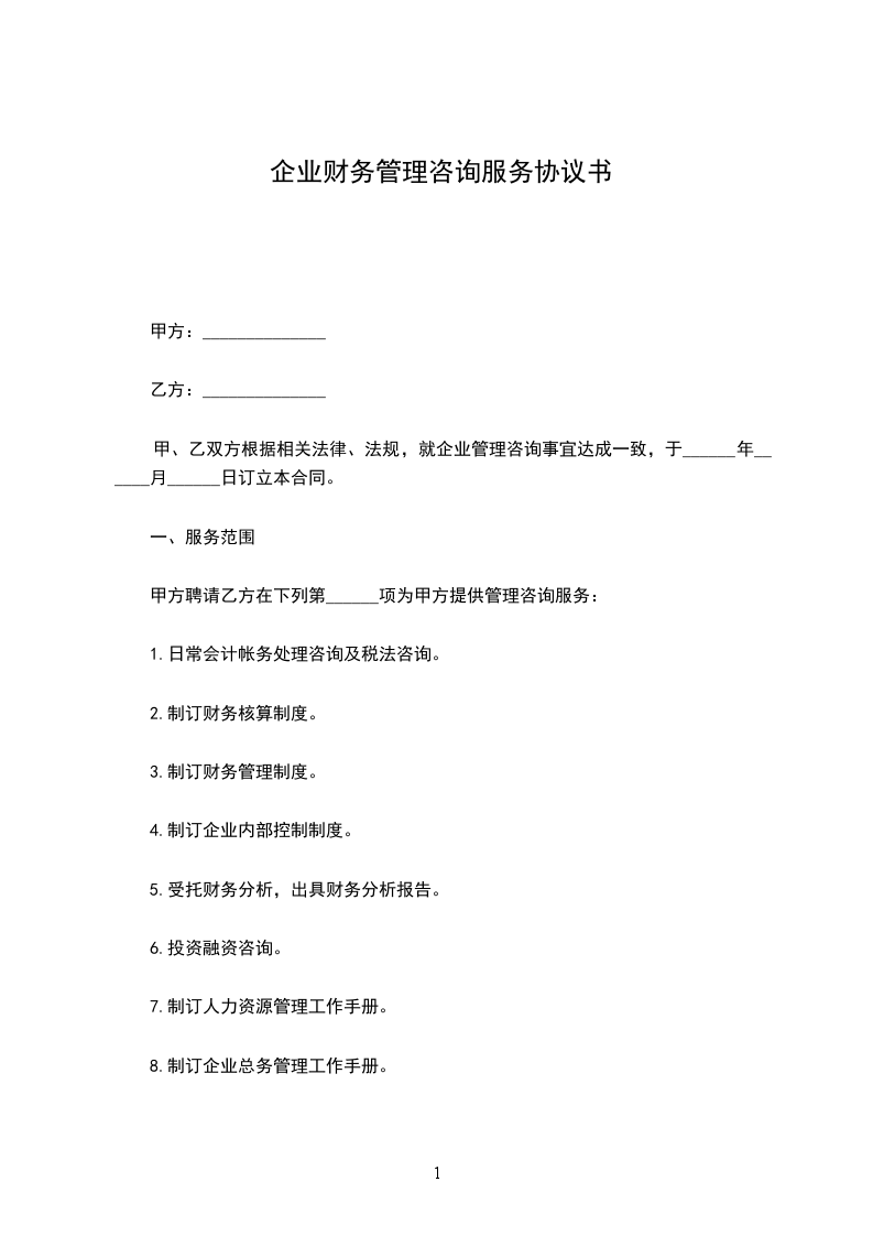 甲方聘请乙方在下列第______项为甲方提供管理咨询服务: