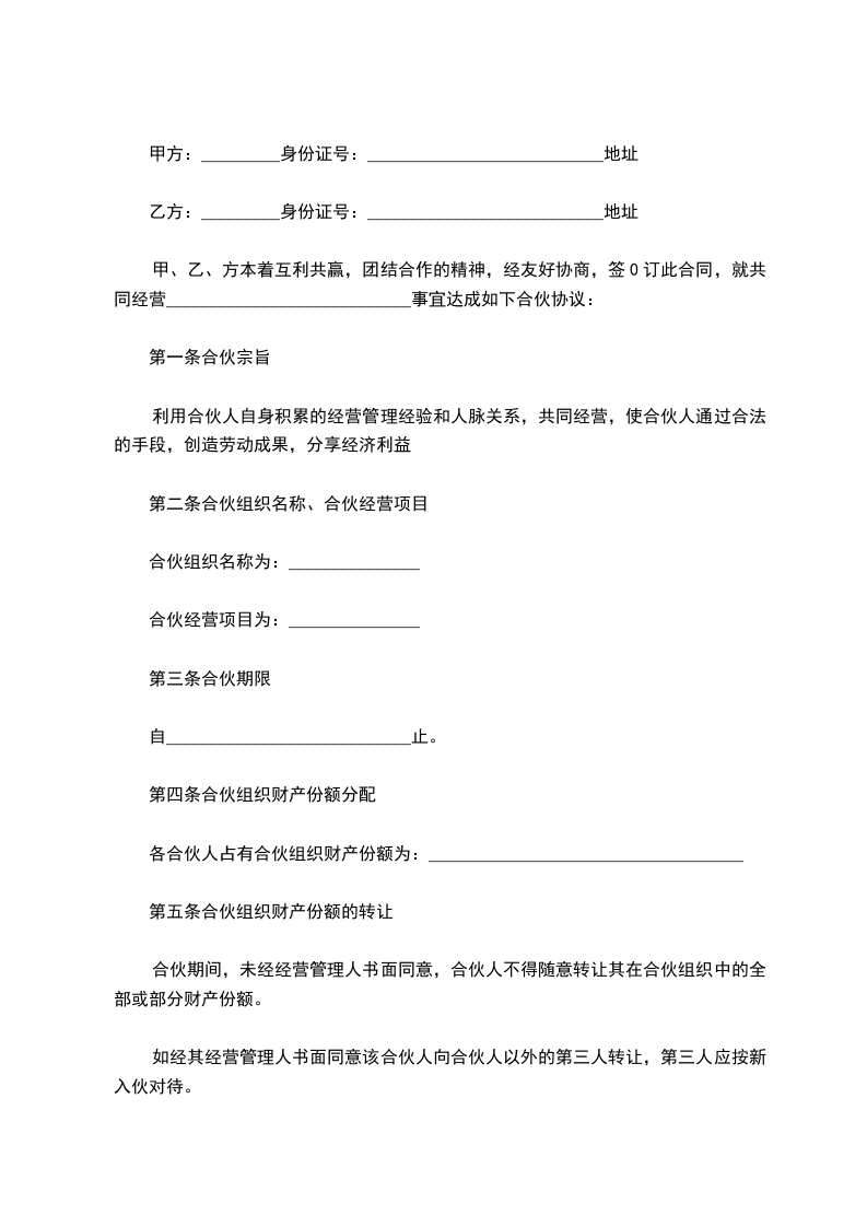 甲、乙、方本着互利共赢,团结合作的精神,经友好协商,签0订此合同,就共同经营____________________________事宜达成如下合伙协议: