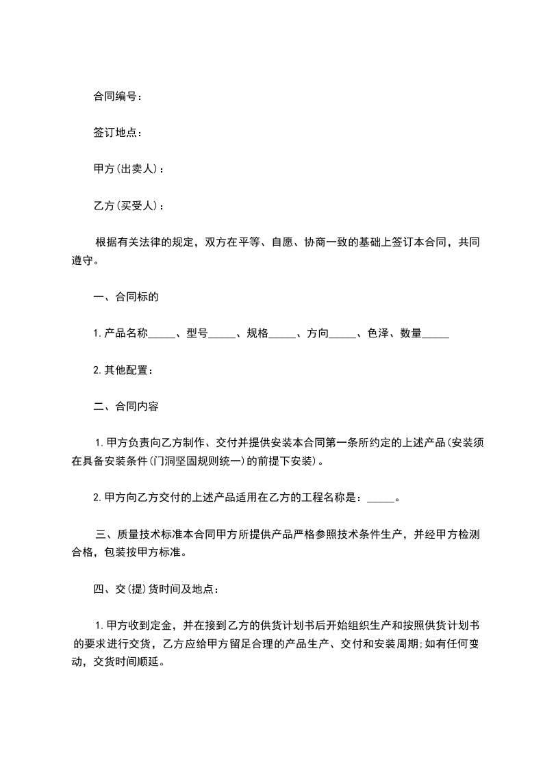 1.甲方负责向乙方制作、交付并提供安装本合同第一条所约定的上述产品(安装须在具备安装条件(门洞坚固规则统一)的前提下安装)。