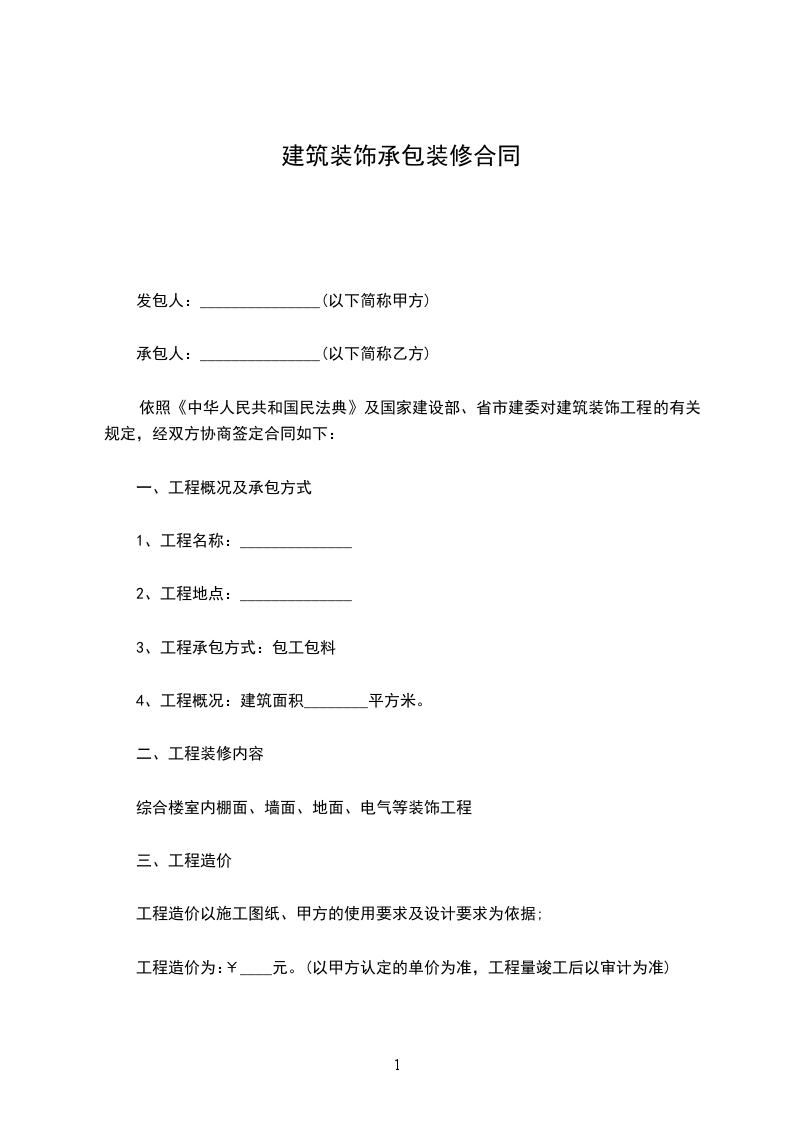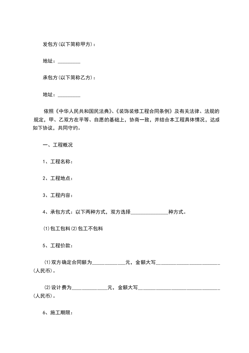 根据《中华人民共和国民法典》及国家有关法律、法规、规章之规定,结合装饰的特点,本照甲乙双方在平等自愿,协商一致的基础上,乙方承包甲方发包的装饰工程的有关事宜,达成如下协议,以共同遵守。