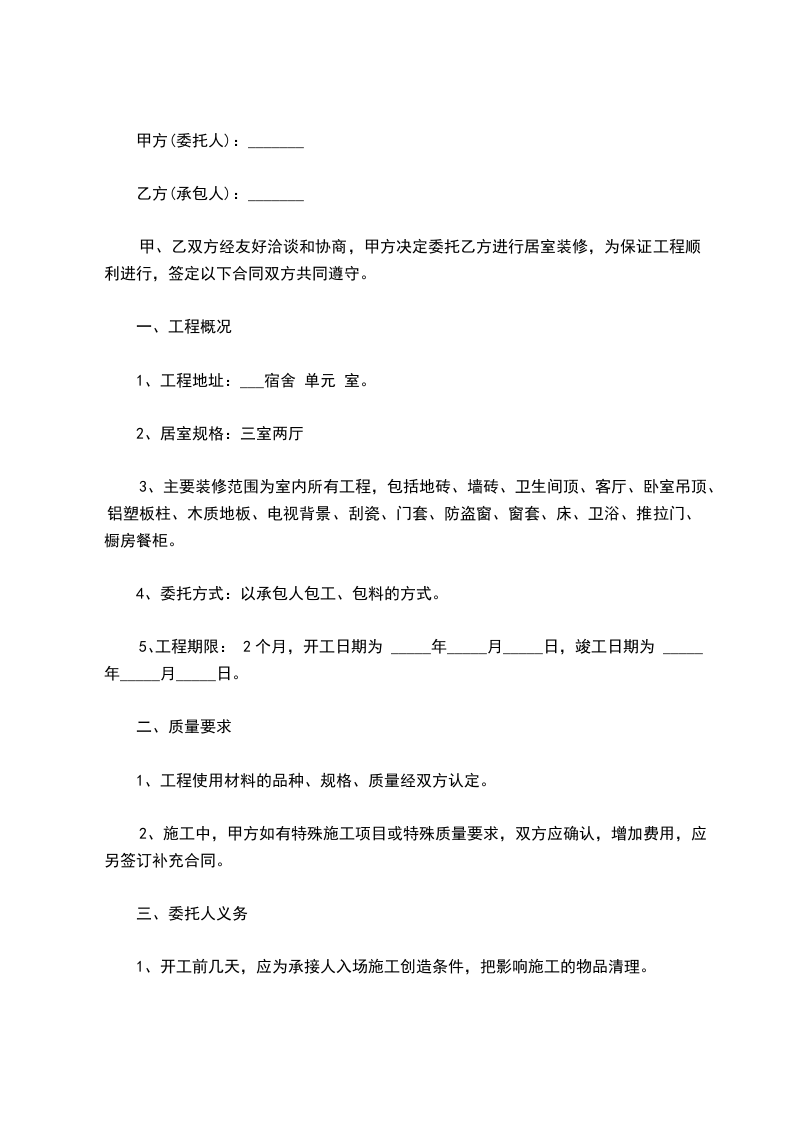 2、施工过程中如有特殊质量要求,双方应达成一致意见,签定补充合同。