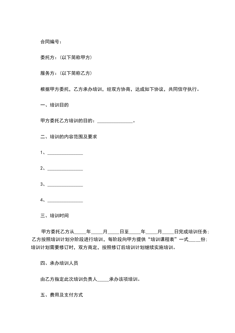 根据甲方委托,乙方承办培训,经双方协商,达成如下协议,共同信守执行。