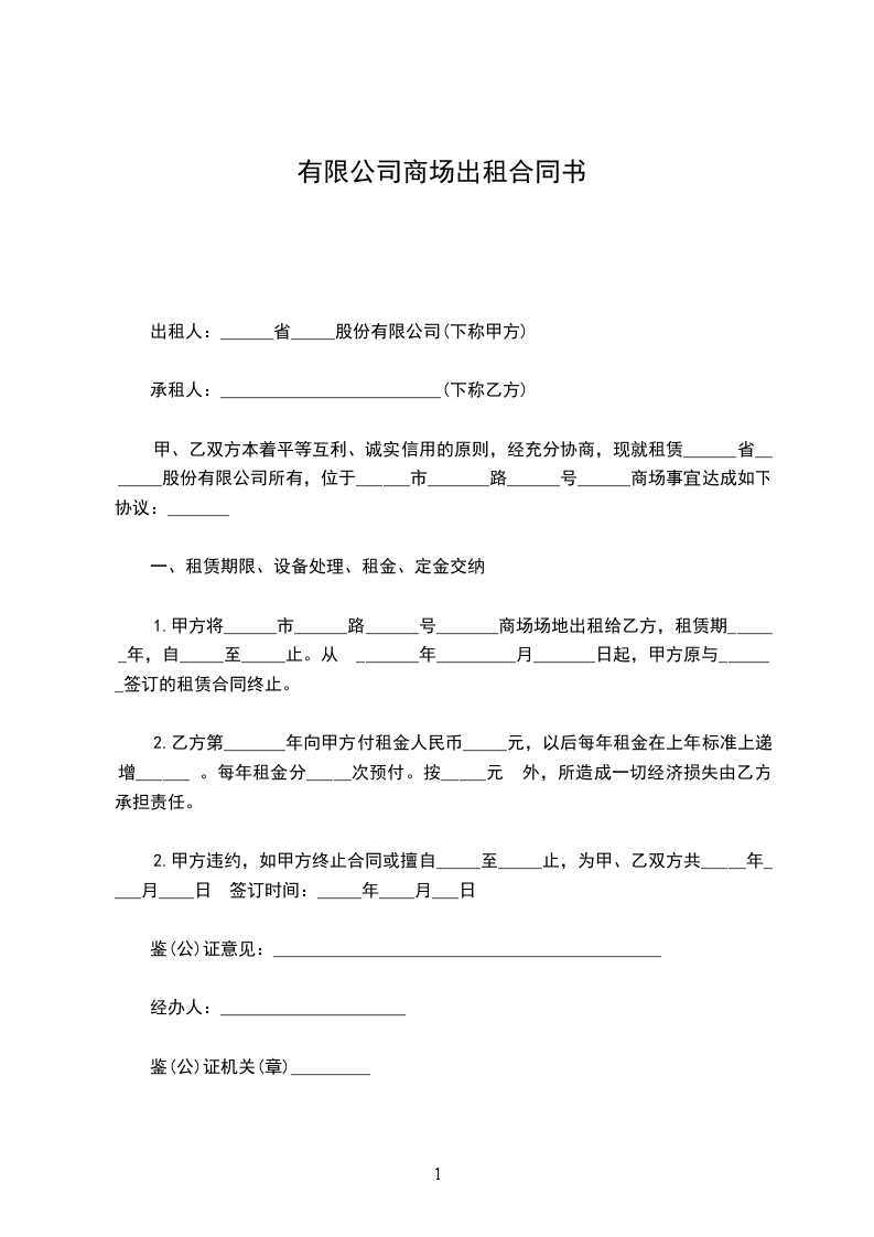 甲、乙双方本着平等互利、诚实信用的原则,经充分协商,现就租赁______省_______股份有限公司所有,位于______市_______路______号______商场事宜达成如下协议: