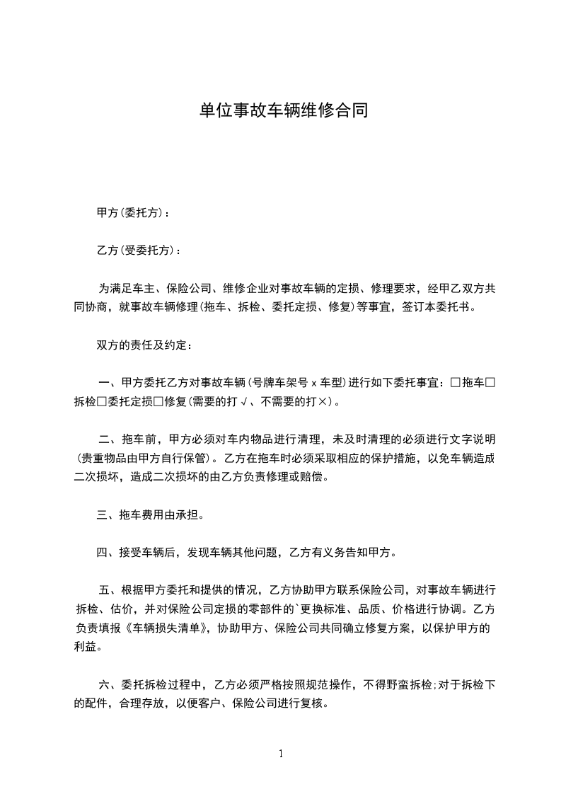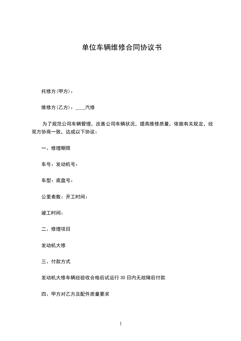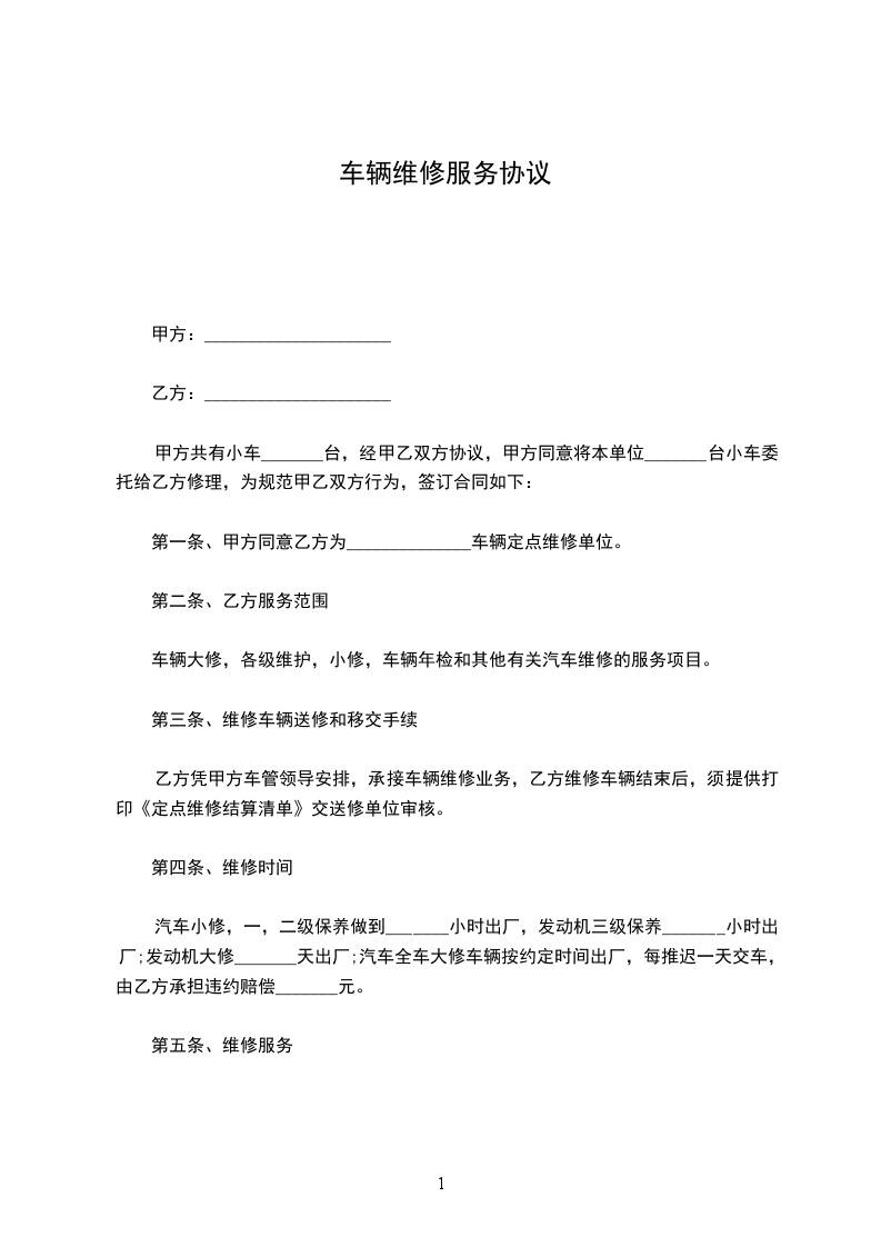 _____(以下简称甲方)考虑到_____(以下简称乙方)所拥有的维修实力和服务水平,甲方自愿在乙方定点维修单位所有车辆。乙方考虑到甲方为固定客户,愿为甲方提供优惠服务。