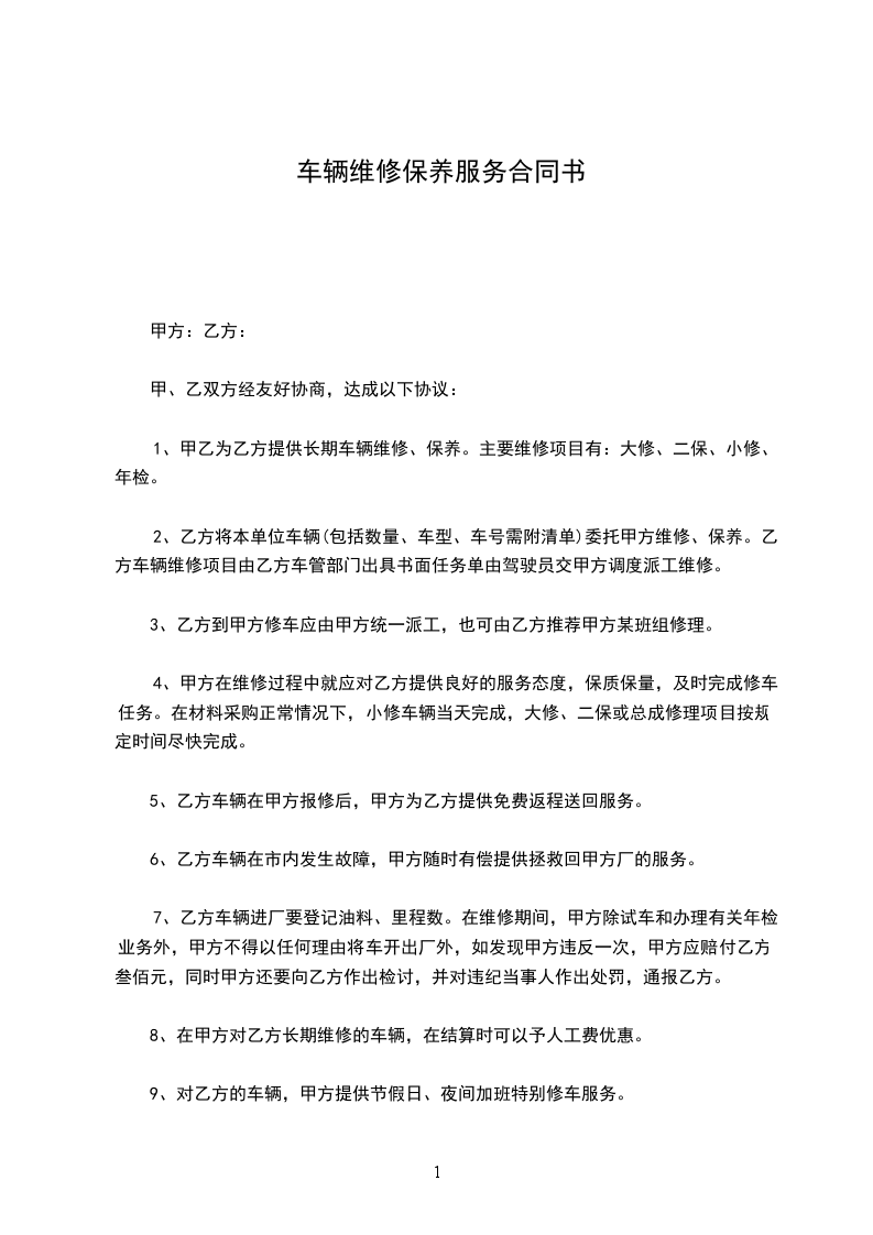 一、甲方车辆到乙方维修时,乙方应向甲方提供优惠服务。