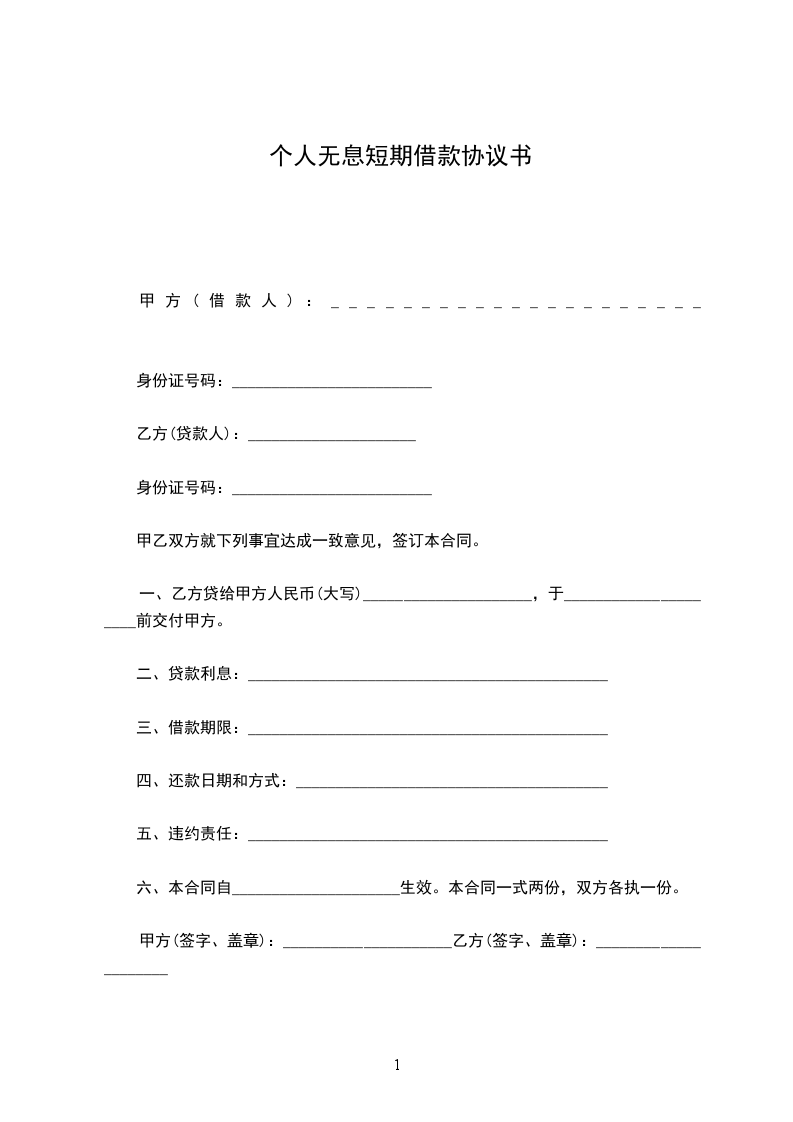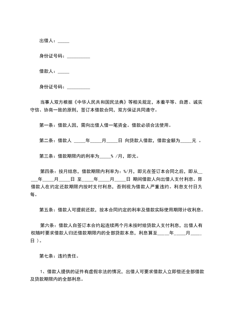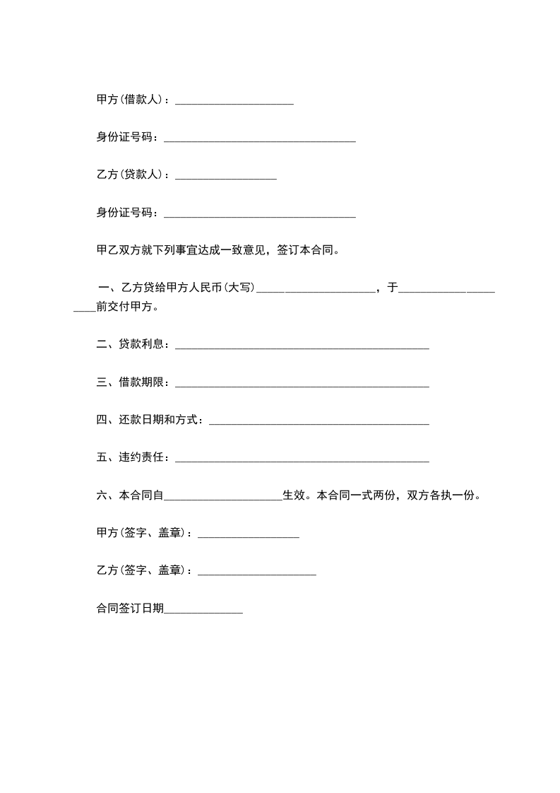 一、乙方贷给甲方人民币(大写)_____________________,于_____________________前交付甲方。