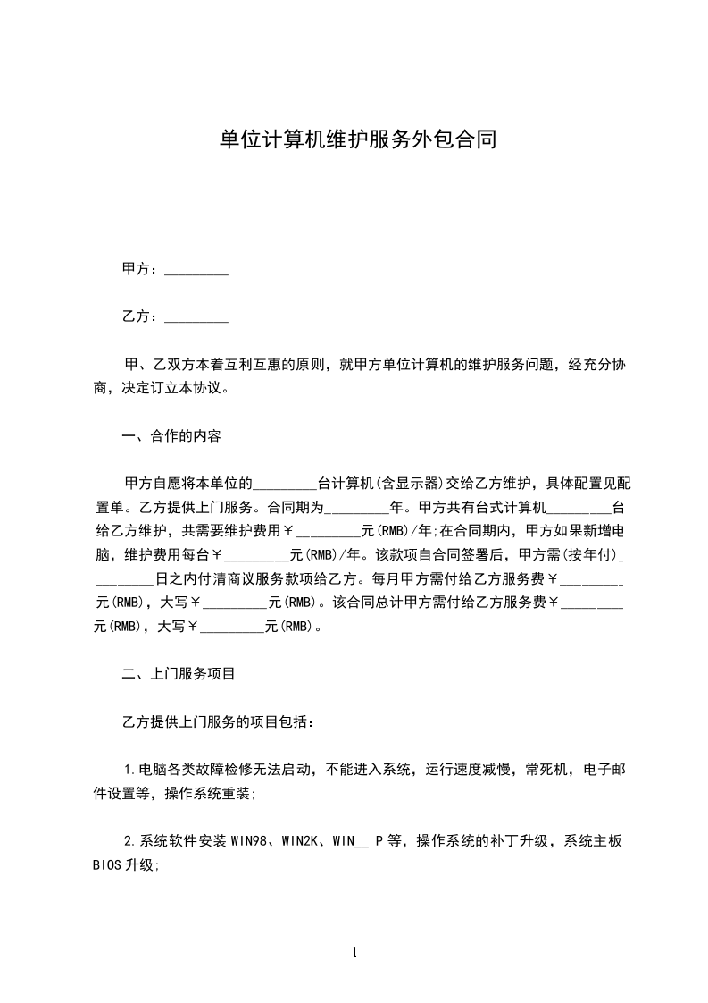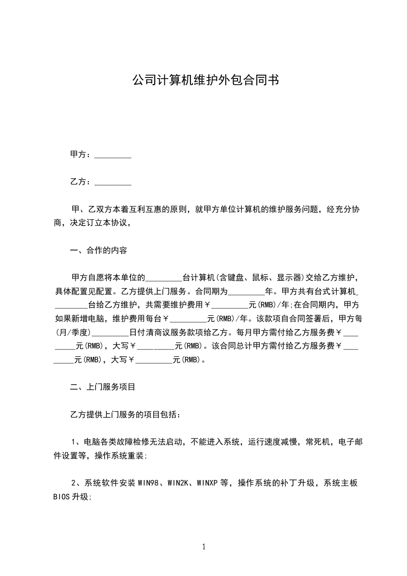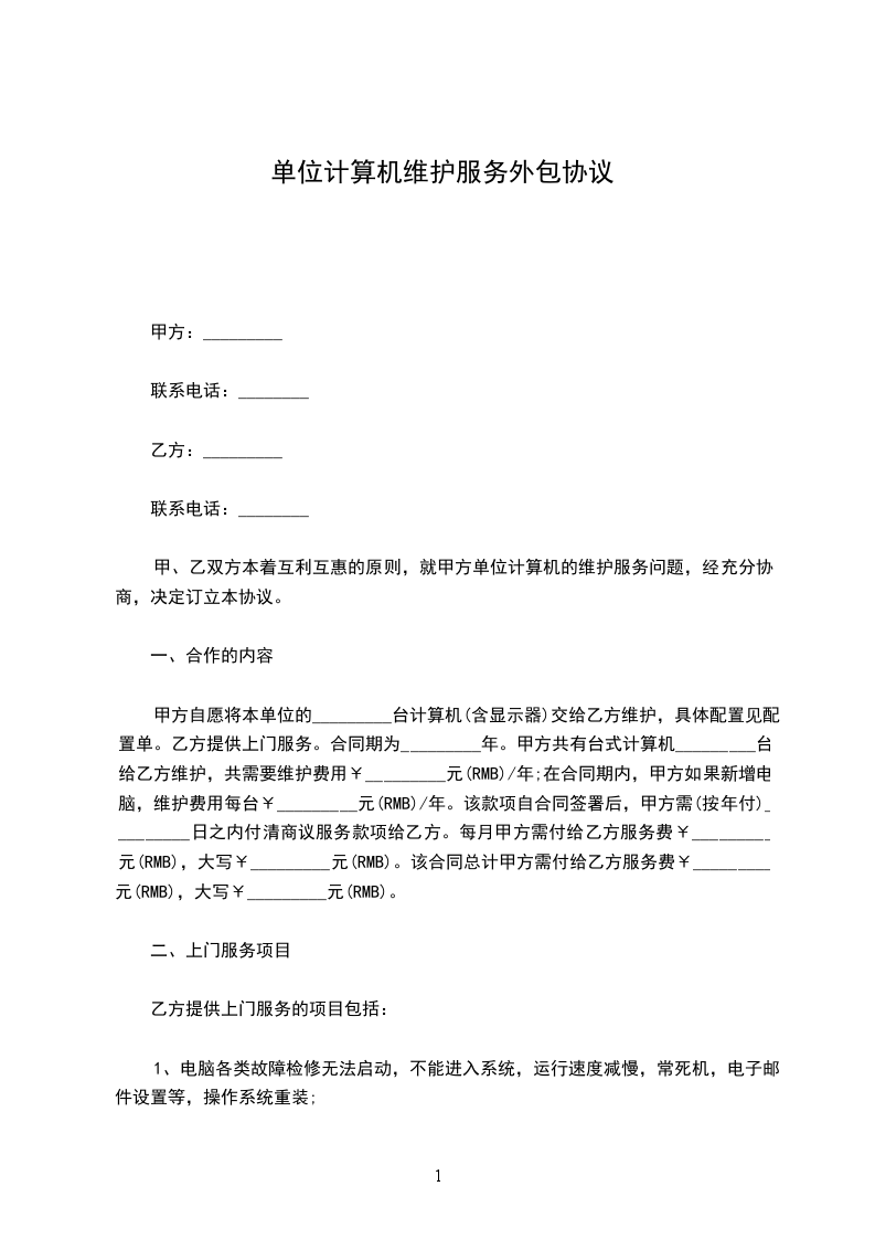 1.修复合同范围内计算机、计算机网络等故障。