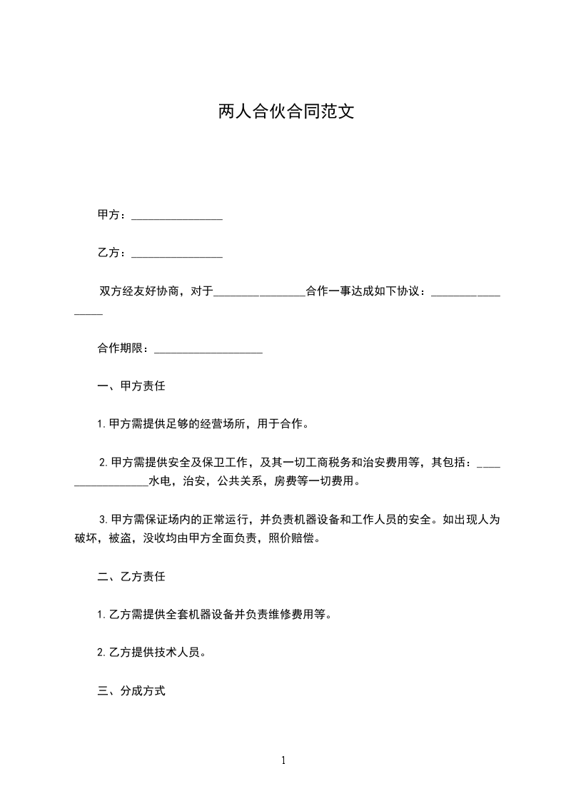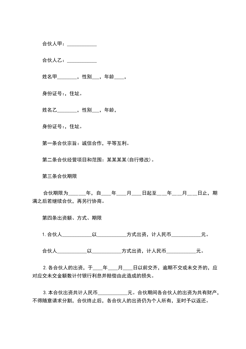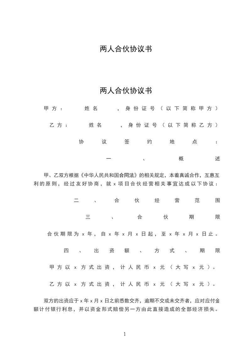 两人合伙协议书
