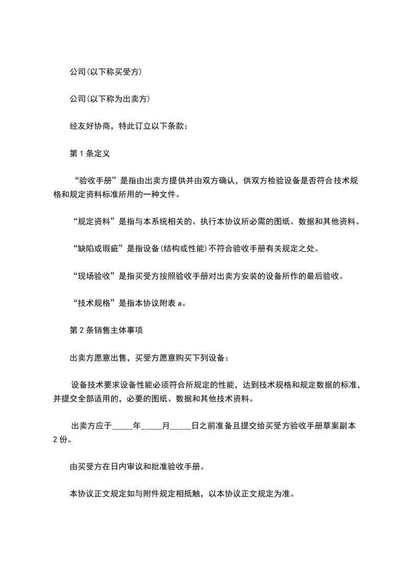 出卖方应于_____年_____月_____日之前准备且提交给买受方验收手册草案副本2份。