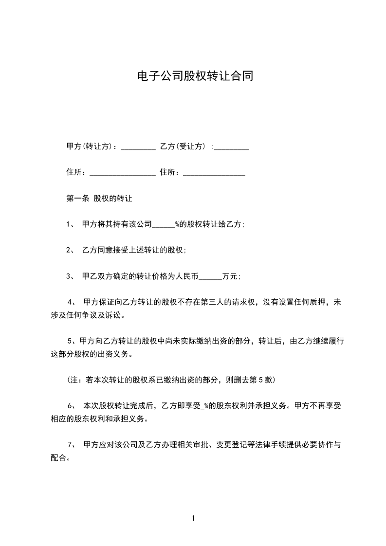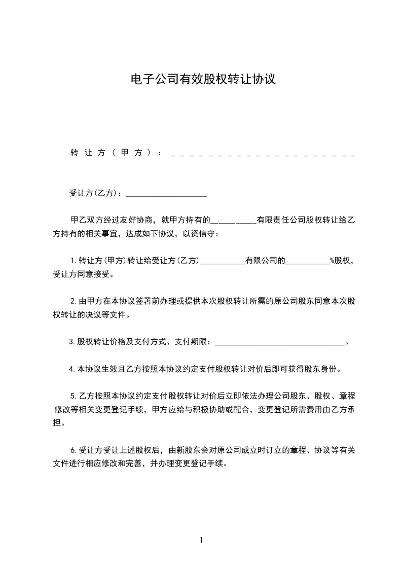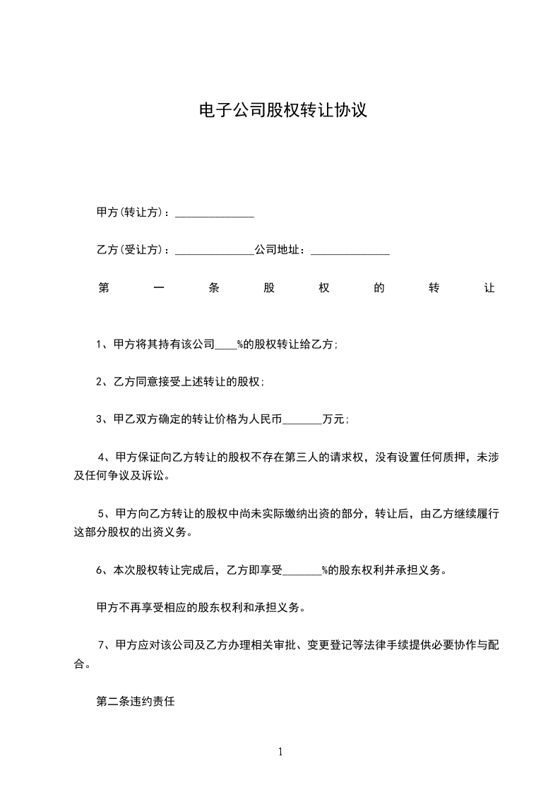 1、甲方将其持有该公司____%的股权转让给乙方;