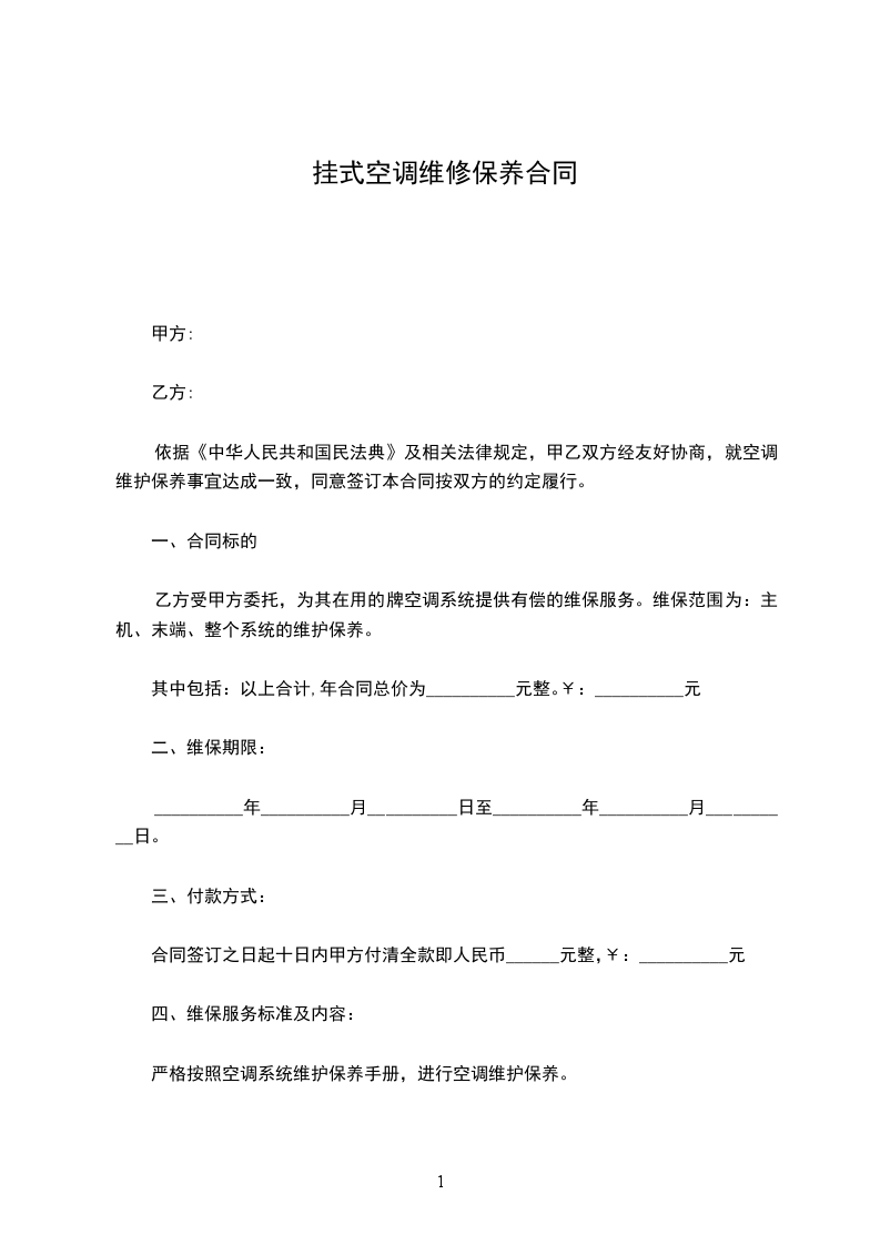 依据《中华人民共和国民法典》及相关法律规定,甲乙双方经友好协商,就空调维护保养事宜达成一致,同意签订本合同按双方的约定履行。