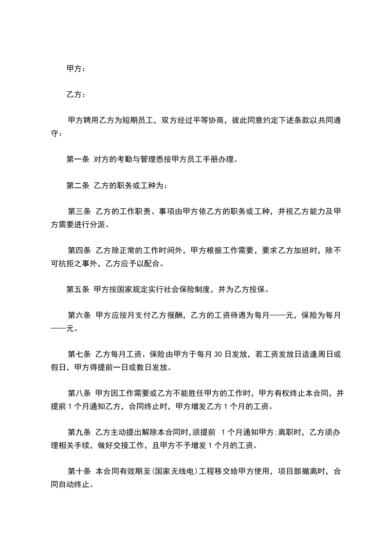 10.劳动合同期满,劳动合同即行终止本合同有效期通常为一年,自本合同签订之日起生效。