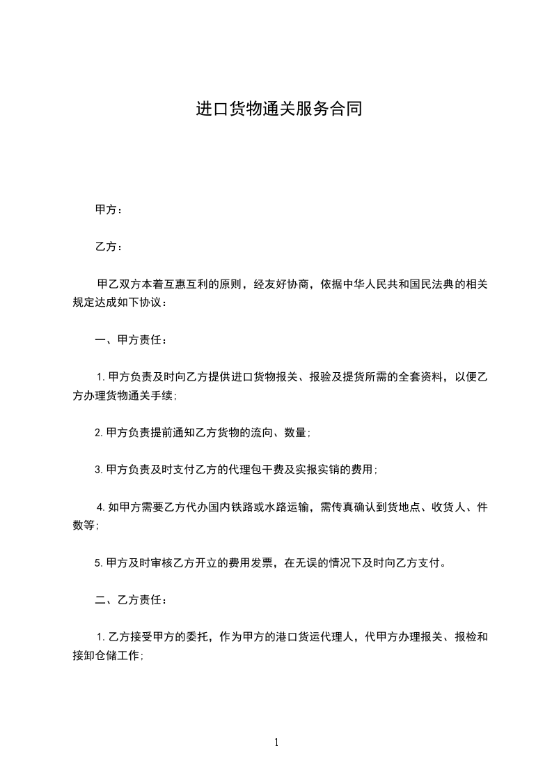 1.甲方负责及时向乙方提供进口货物报关、报验及提货所需的全套资料,以便乙方办理货物通关手续;