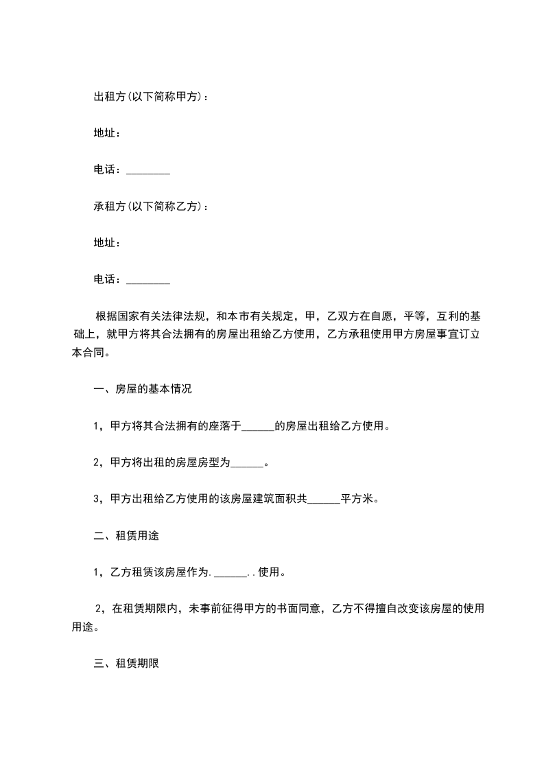 根据国家有关法律法规,和本市有关规定,甲,乙双方在自愿,平等,互利的基础上,就甲方将其合法拥有的房屋出租给乙方使用,乙方承租使用甲方房屋事宜订立本合同。