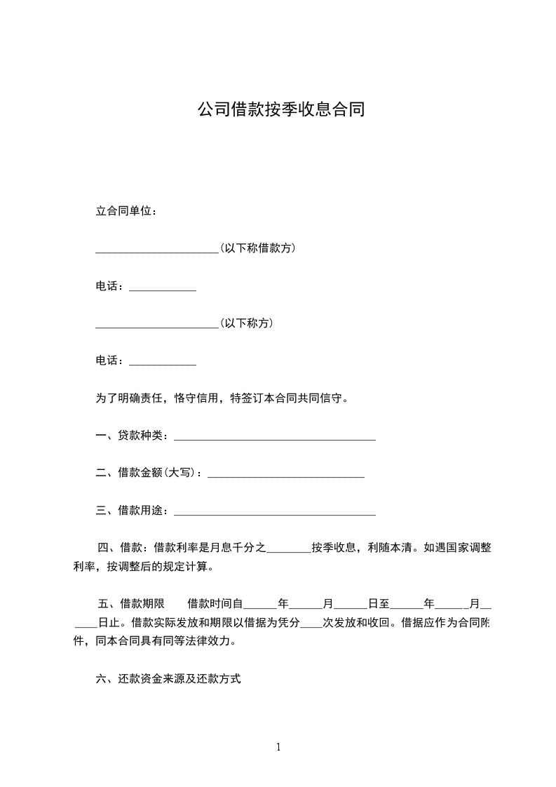 四、借款:借款利率是月息千分之________按季收息,利随本清。如遇国家调整利率,按调整后的规定计算。