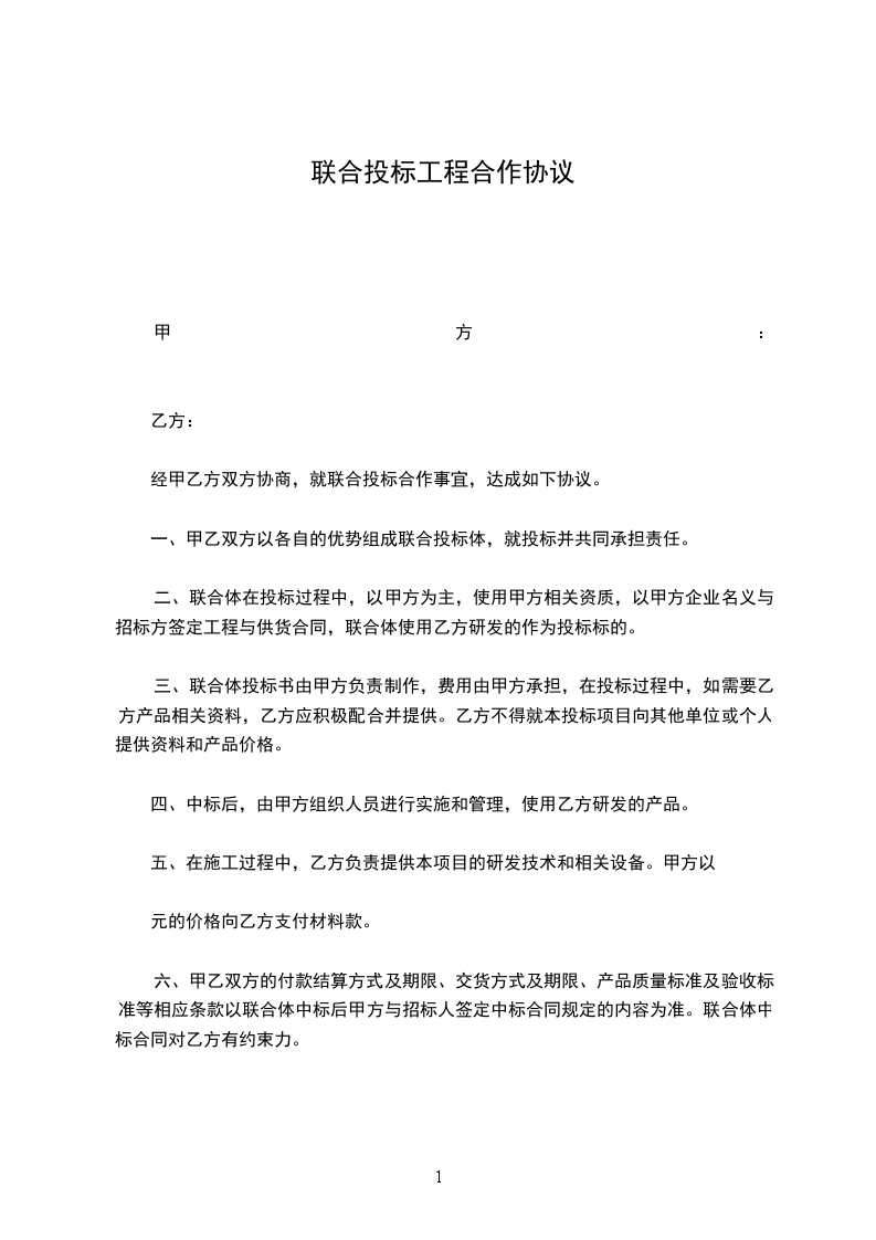 一、甲乙双方以各自的优势组成联合投标体,就投标并共同承担责任。